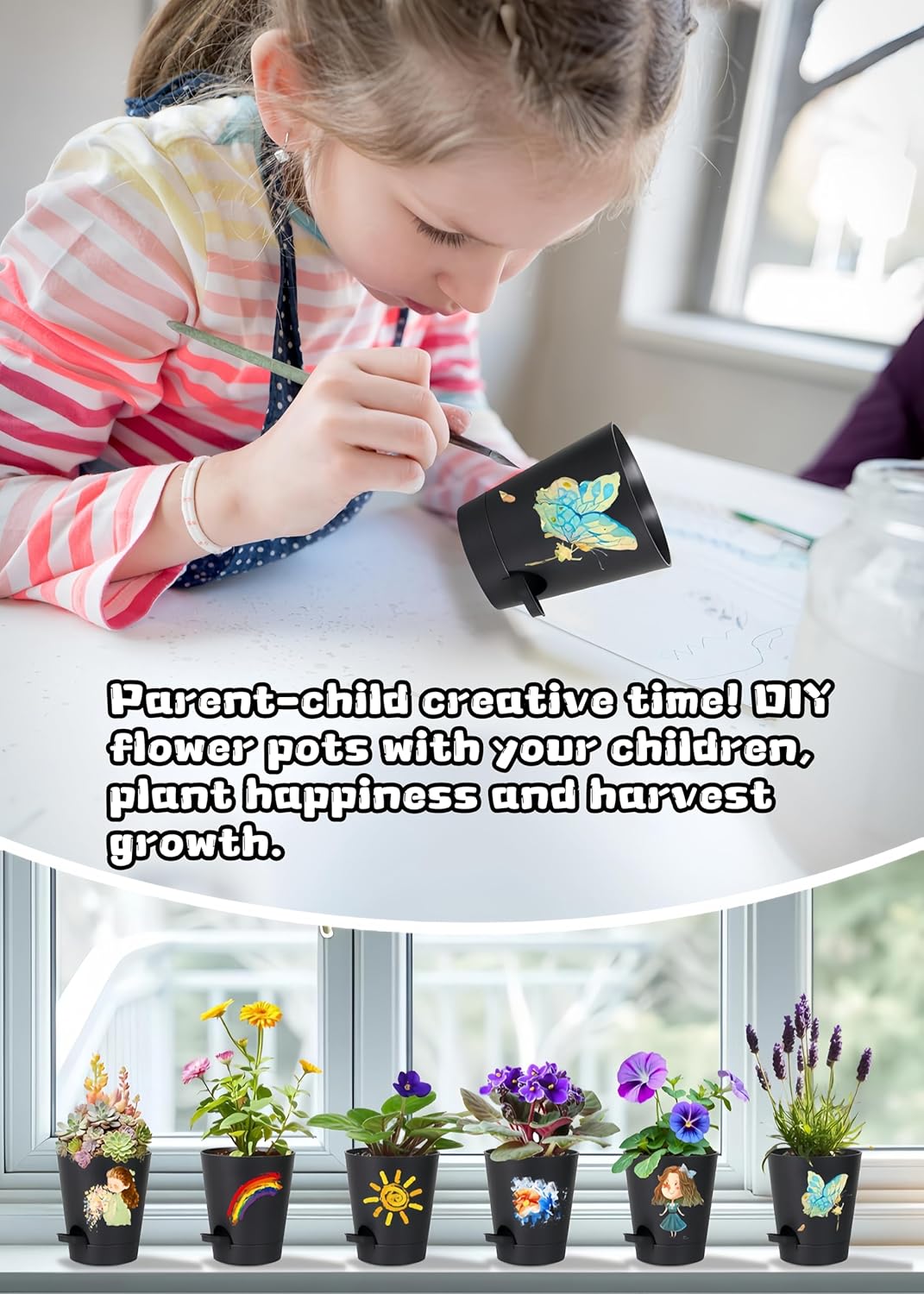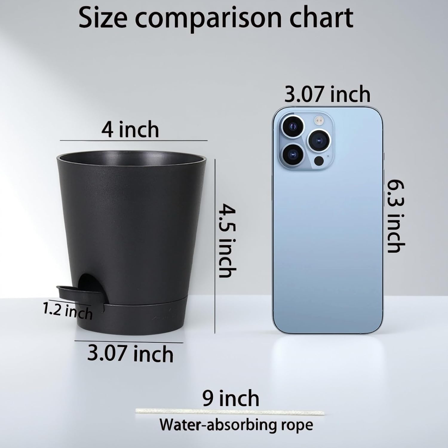 12 Pack 4 Inch Self Watering Plant Pots with Drainage and Saucers,Plastic Flower Pots for Indoor and Outdoor Plants, Nursery Planters for Houseplants and Herbs Black, 4 inch 12pcs