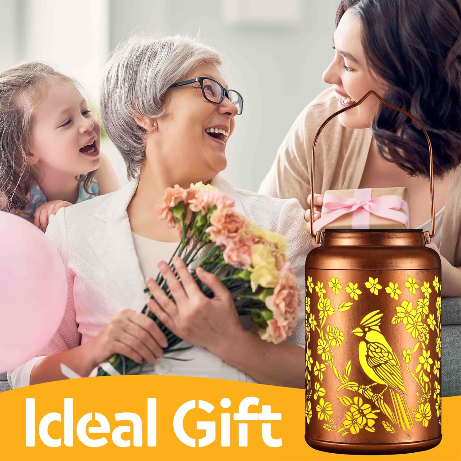 Solar Lanterns Outdoor Waterproof Garden Decor Birthday Gifts for Women Mom Grandma Hanging Lights Metal Decoration Outside for Yard, Patio,Backyard,Porch(Red Bird)