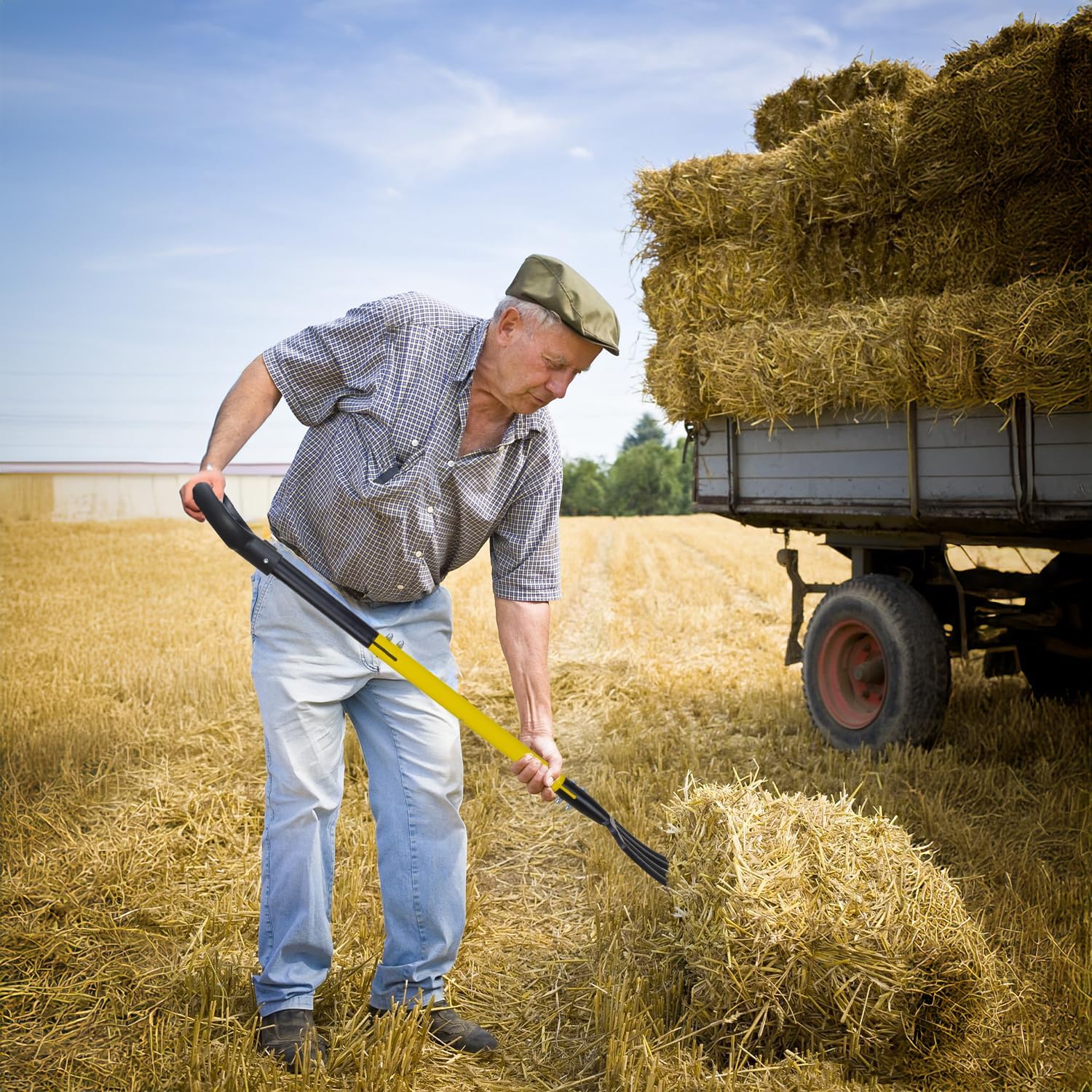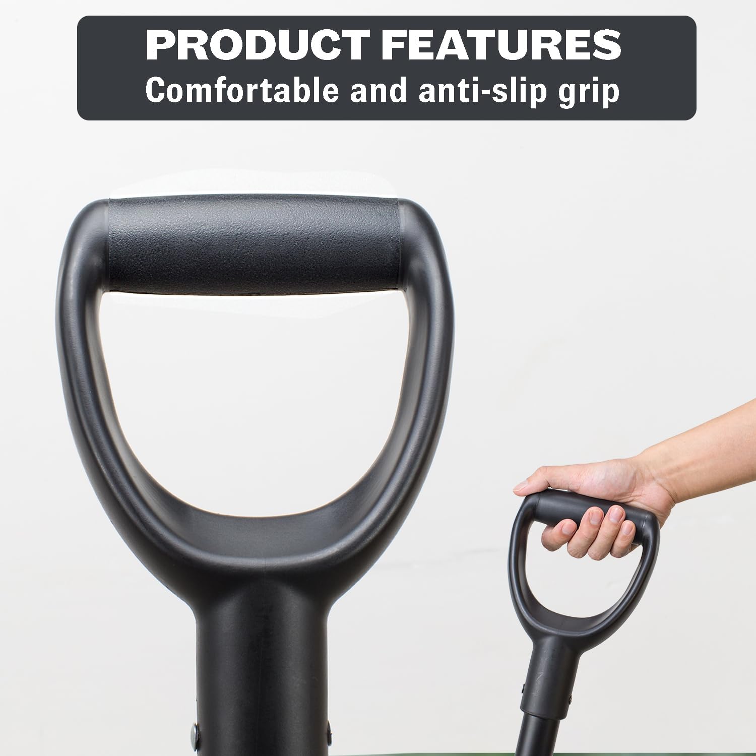 - Ergonomic Pitchfork with Enhanced Grip Our pitchfork features a wide rubber Y-Grip with a 45-degree elevation angle, ergonomically designed to provide slip resistance and better hand grip strength. This design ensures prolonged use without hand fatigue or injury, making it ideal for extensive gardening sessions.