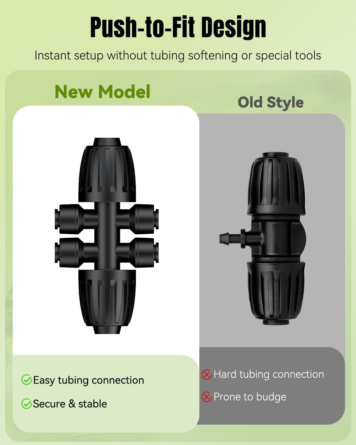 - Optimized Water Distribution: Enjoy balanced pressure throughout your irrigation system! Secure locking mechanism in the 1/2'' to 1/4'' drip irrigation fitting effectively prevents leaks or budging. Always ensure a consistent flow to every emitter