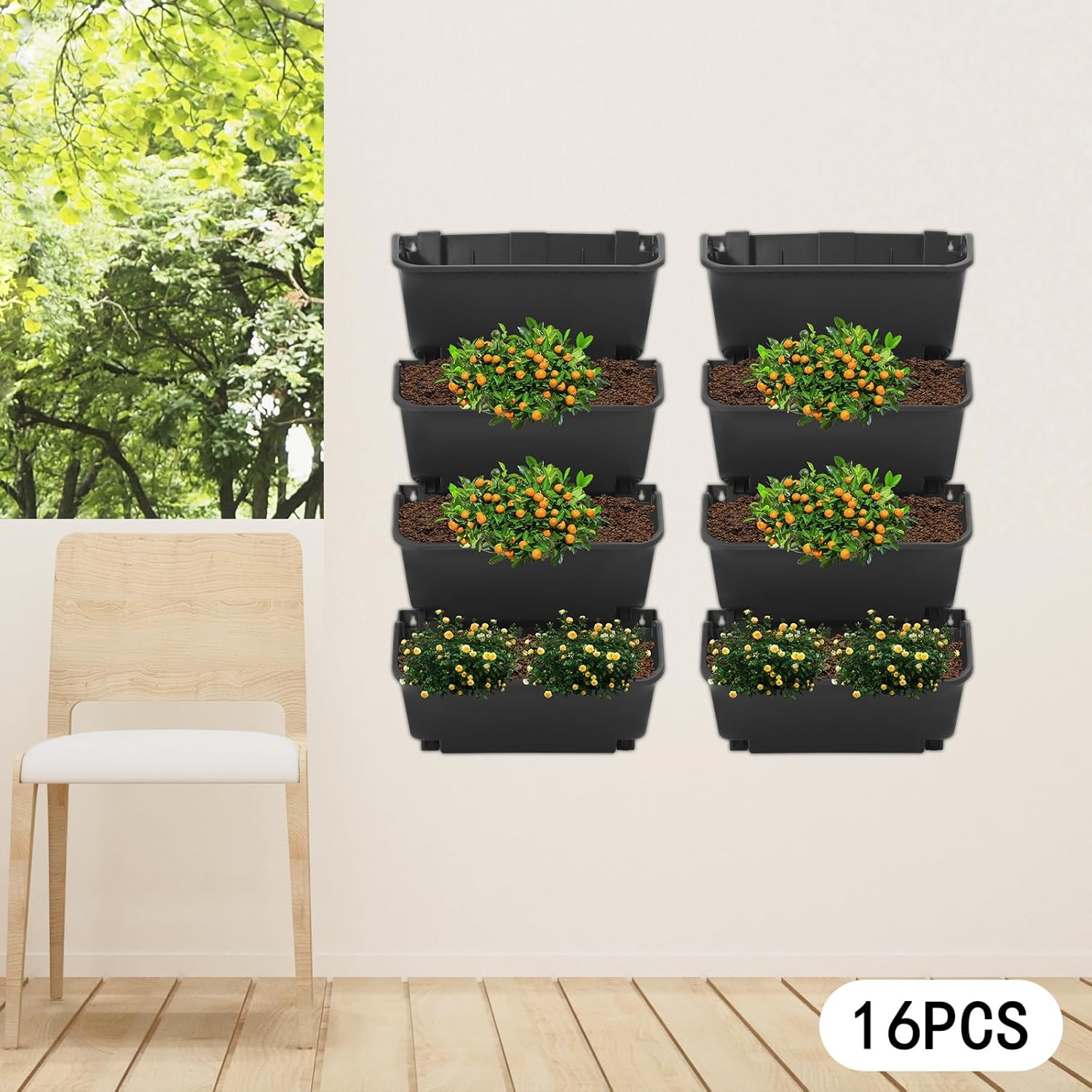 - Modular Wall-Mounted & Stackable Design - This 16-piece vertical wall planter set features a snap-fastener connection system for easy stacking and installation. You can freely combine them to create a customized green wall on any indoor or outdoor surface—perfect for small balconies, large terraces, or commercial building facades.