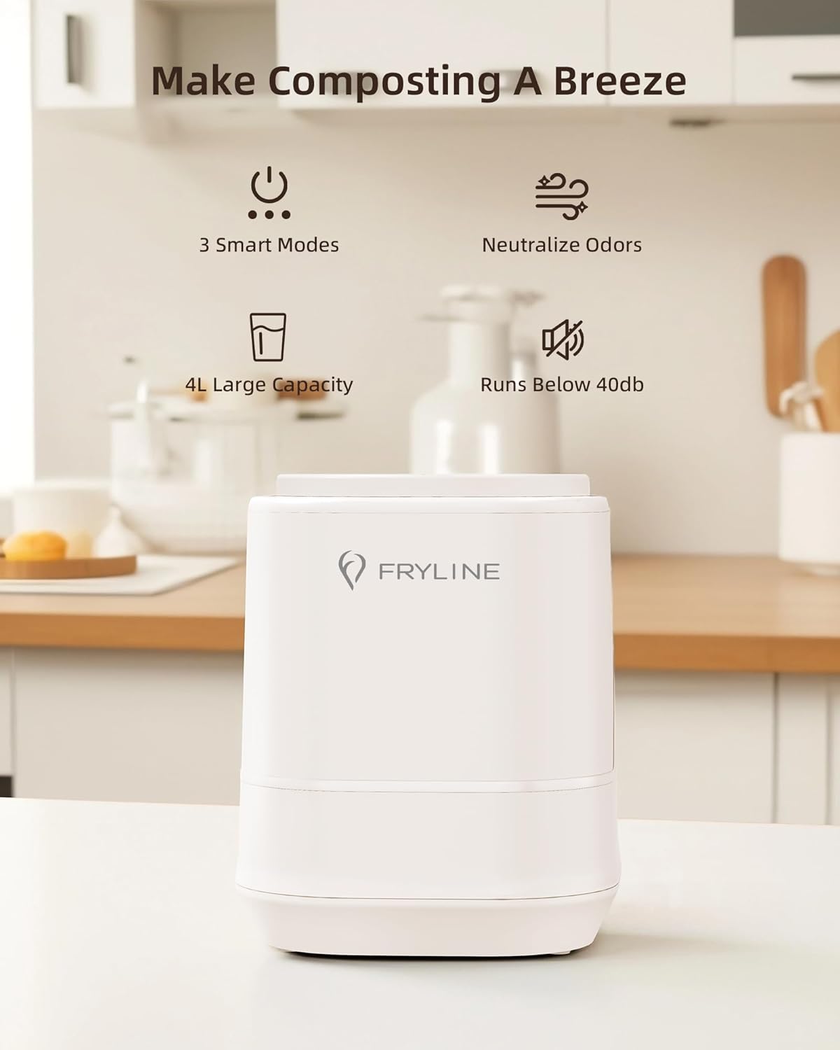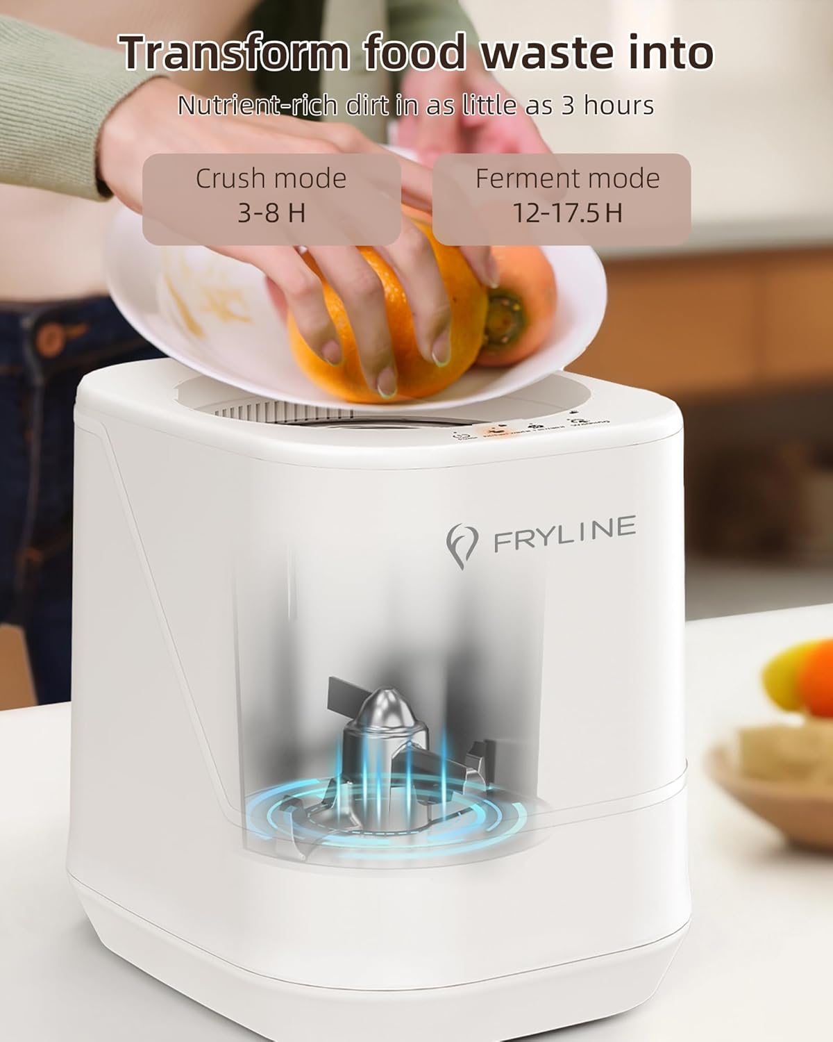 - Electric Composter for Kitchen: FRYLINE compact electric composter allows you to reduce waste, save on disposal costs, and minimize your carbon footprint—all while enriching your garden