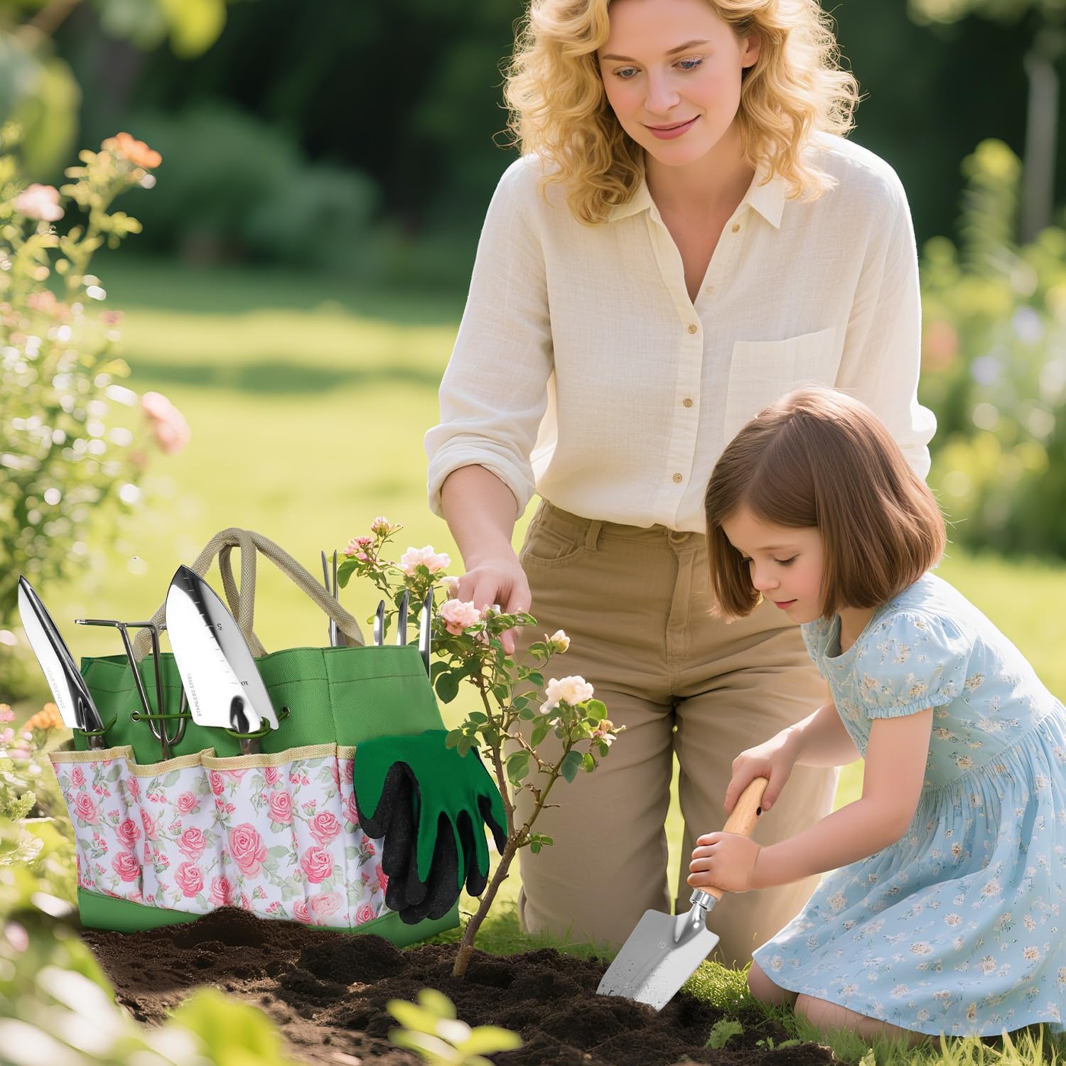 - [ Floral Tote for Easy Storage ] Keep all gardening kits organized in the included tote bag, made from sturdy Oxford cloth. Its spacious design and multiple pockets allow for neat storage, while the lightweight build makes it easy to carry around the garden.