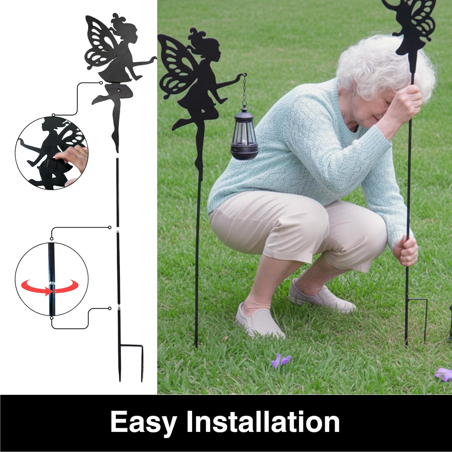 - 【 Tall Metal Solar Stakes 】Differing from other Fairy Statutes Solar lights for decoration, these angel figurines lights offer much taller height as 39 inch. The fairy garden kit comprises two straight poles with screws on both ends and one pole with a stake.