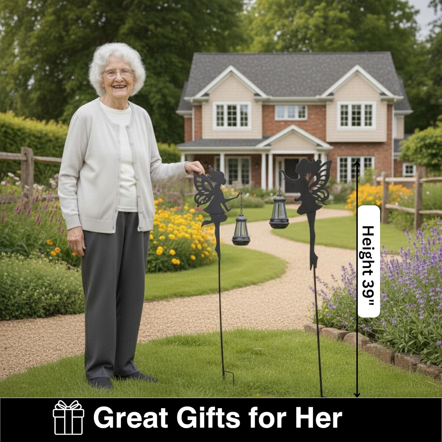 Fairy Garden Accessories Outdoor Lawn Ornaments 1 Pair - Solar Lights Halloween Decorations Garden Statue, Metal Stakes Decorative Figurines for Yard Decor, Patio (Type A Color-Shifting Lighting)