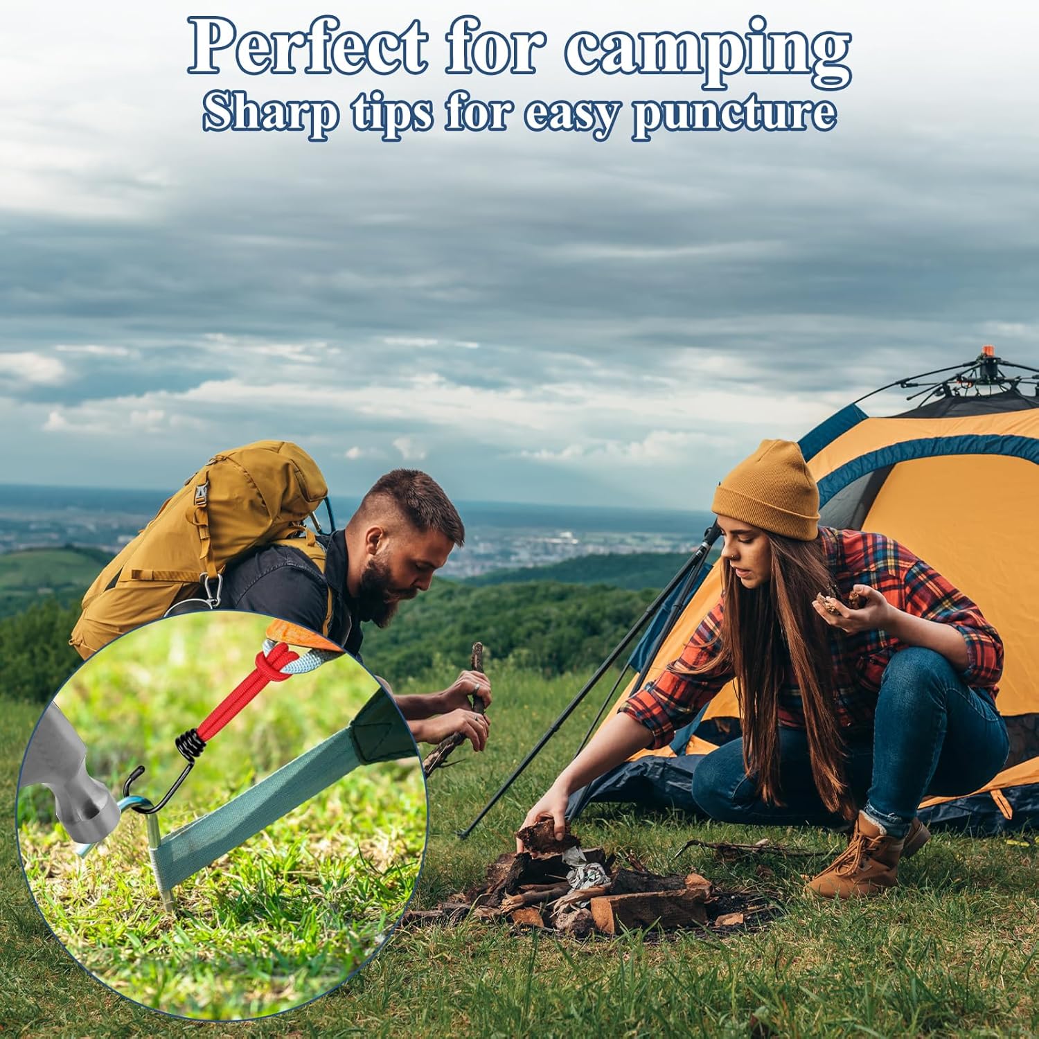 - Multiple Uses: Tent stakes heavy duty metal is perfect for securing tents, camping stakes, tarp hooks, inflatable stakes, decorative stakes, ground stakes, gazebo anchors, lawns, garden structures, etc., and for securing netting, garden fabrics, twine curtains and more