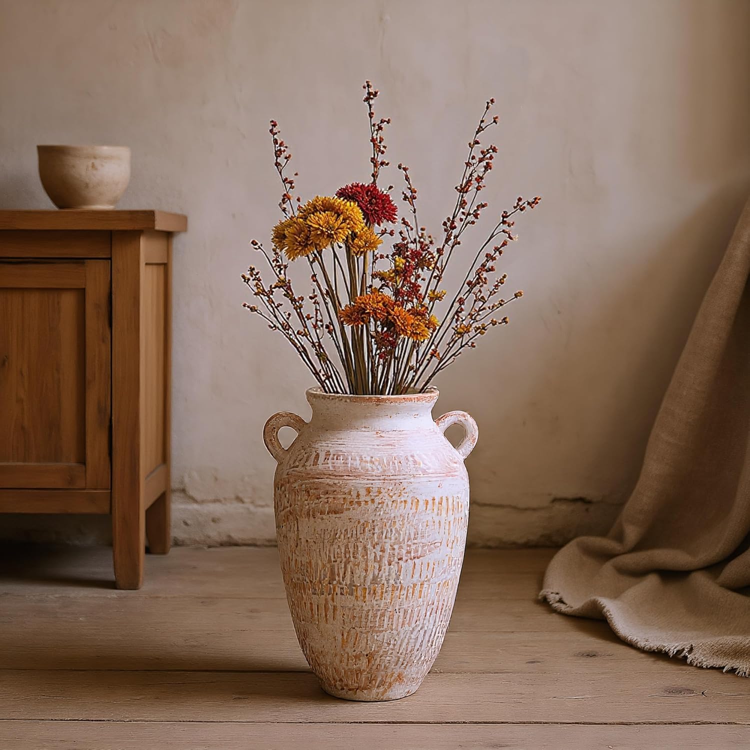 - 【Authentic Vintage Charm】Designed with deliberate non-penetrating cracks and distressed details, this vase embodies a timeless, weathered aesthetic. It effortlessly brings a sense of history and rustic elegance to any room, perfect for farmhouse, boho, or mid-century modern styles.