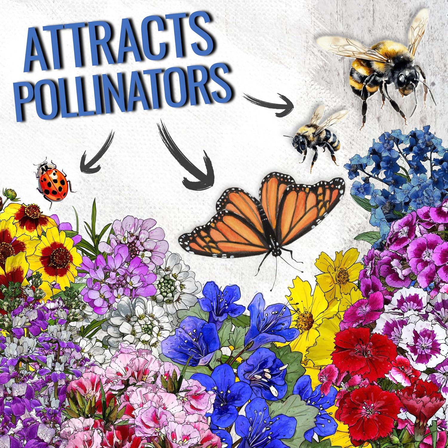 - Flower Seeds: Premium bulk package of wildflower seeds to establish a colorful garden filled with red flowers, orange flowers, yellow flowers, blue flowers, pink flowers, purple flowers and more!