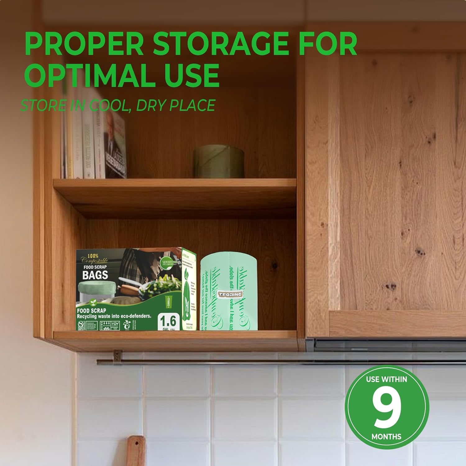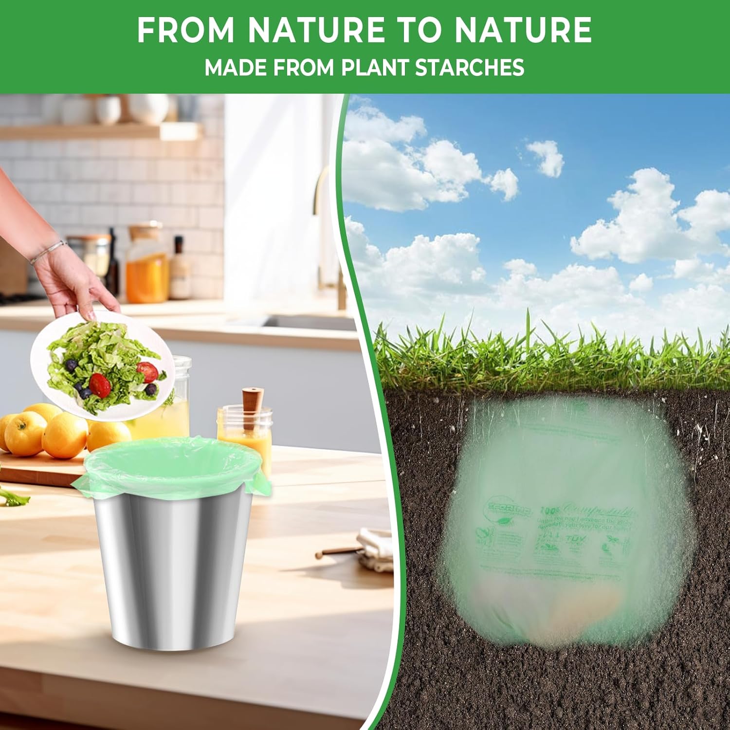 Small Compost Bags with Handle Tie,1.6 Gallon Compostable Food Scrap Bags For Counter Top Compost Bin, 80 Count, 6 Liter, BPI & OK compost INDUSTRIAL Certified