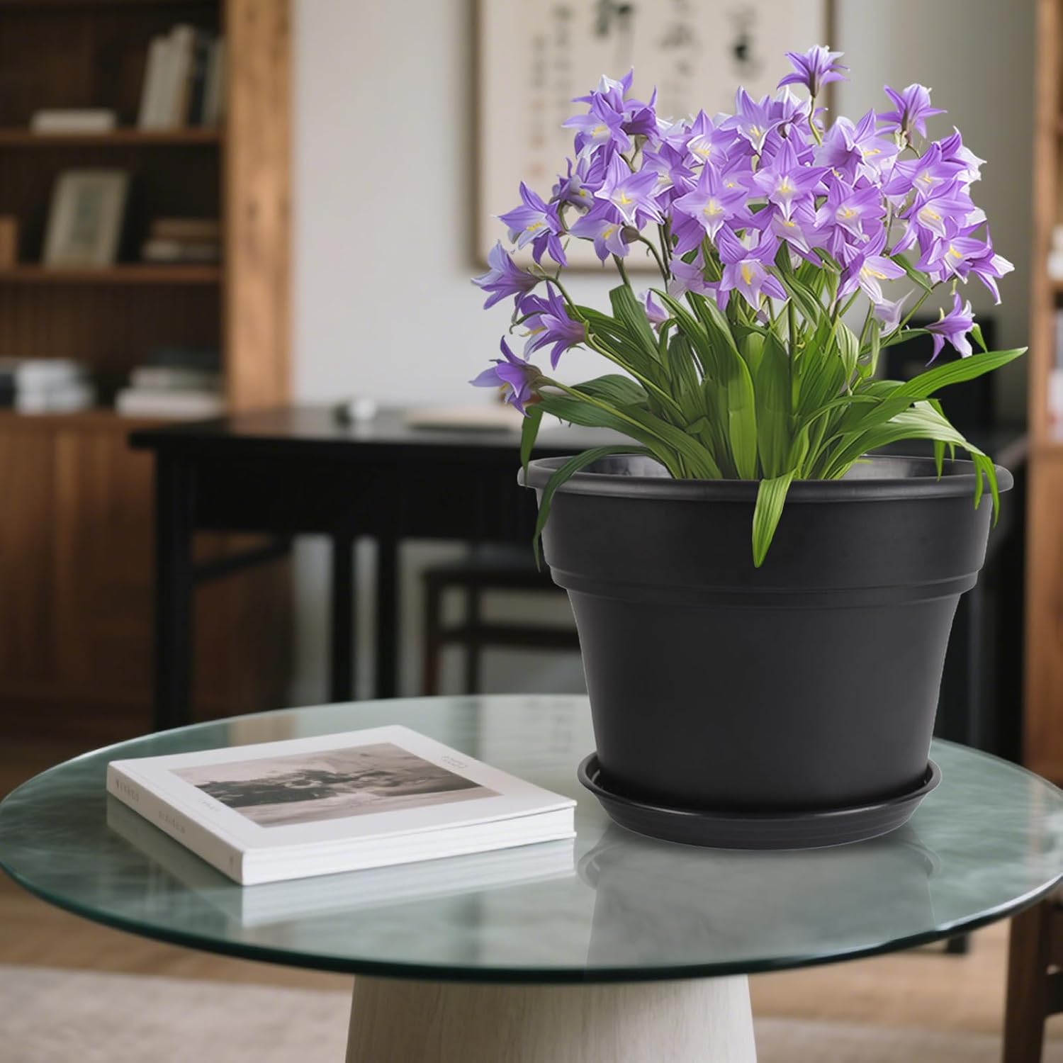 - 【Excellent Drainage and Tray】10 inch Plant Pots are equipped with pre-drilled drainage holes and a removable saucer, these planting pots ensure proper water flow, prevent root rot, and protect surfaces from excess moisture. Saucers capture overflow water for easy cleanup.