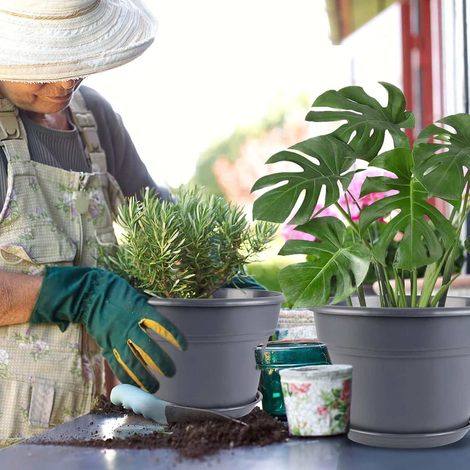 - 【Excellent Drainage and Tray】13 inch Plant Pots are equipped with pre-drilled drainage holes and a removable saucer, these planting pots ensure proper water flow, prevent root rot, and protect surfaces from excess moisture. Saucers capture overflow water for easy cleanup.