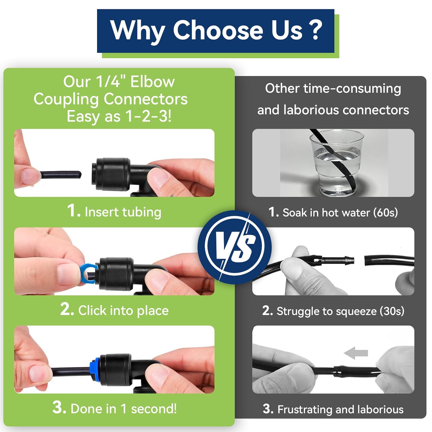 20 Pack 1/4" Universal 90 Degree Elbow Fitting, Quick Connect Universal Drip Irrigation Tubing Coupling Valve, Connector Locking Fitting for Sprinkler or Drip Irrigation System