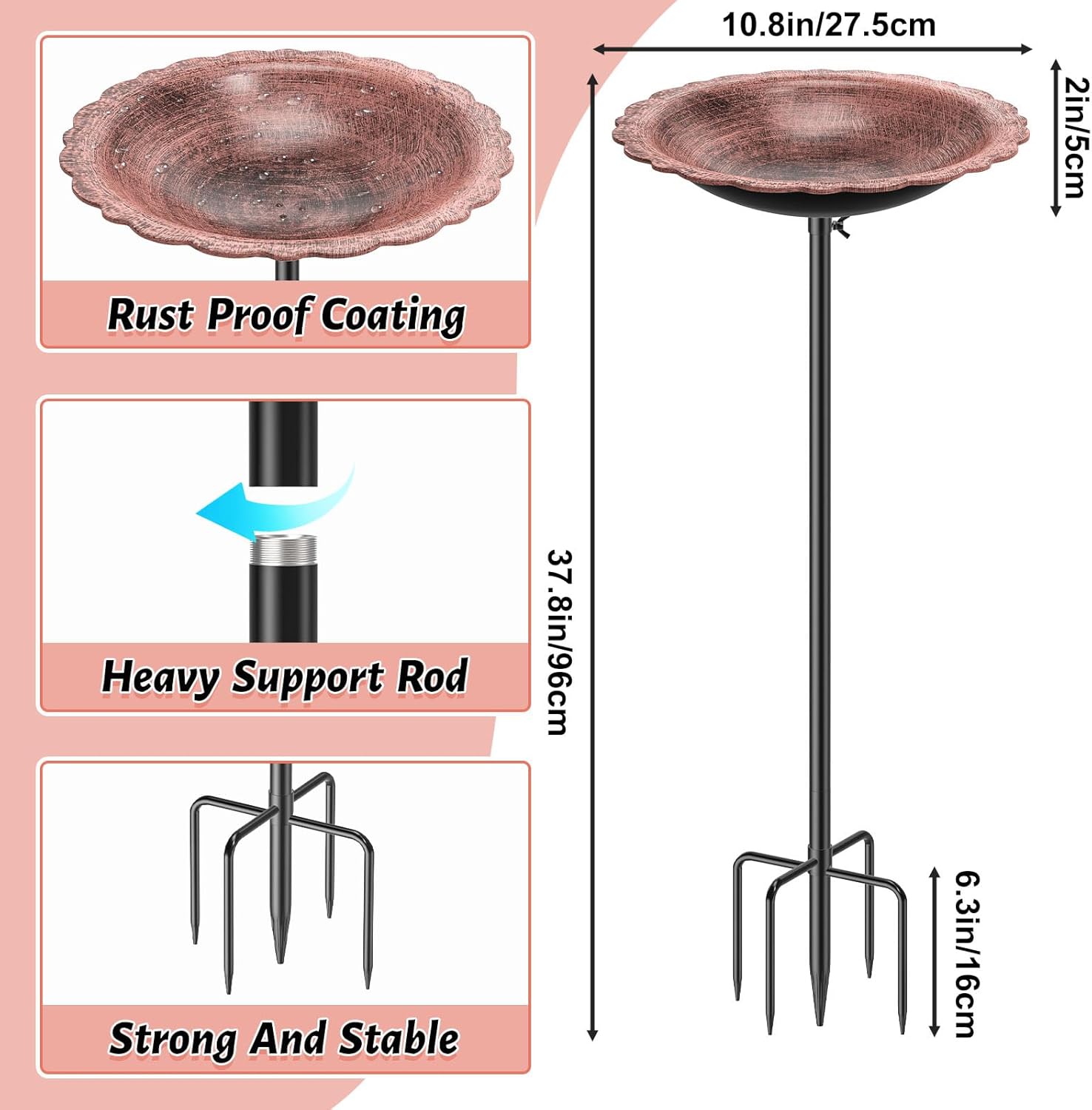 - Bright colors:The vintage copper color beautiful and elegant easily attracts birds for bathing and complements the flowers and plants, creating a more natural and pleasant environment. Itβs sure to become a striking focal point in your outdoor space