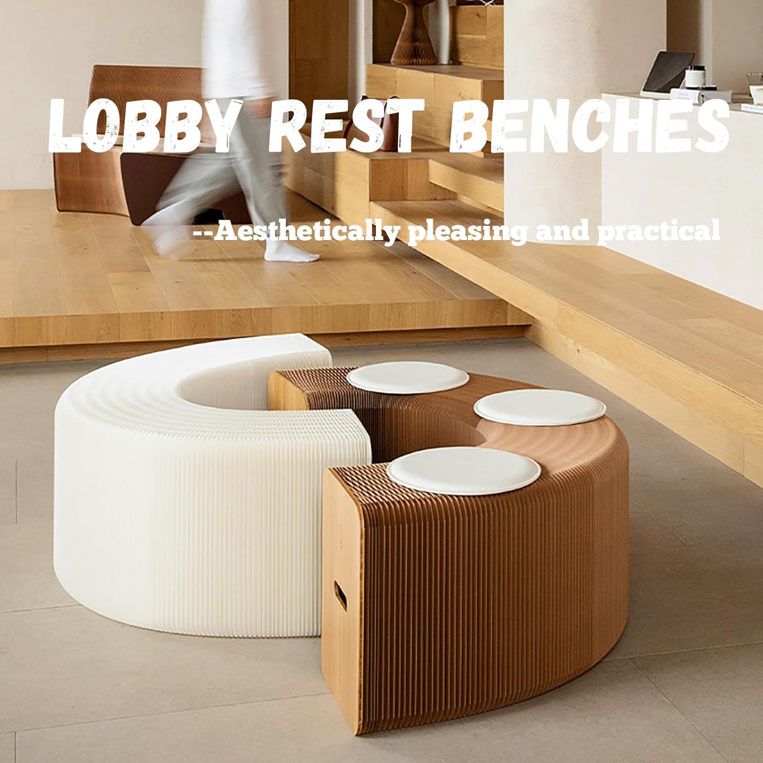 Foldable Kraft Paper Stool, Honeycomb Accordion Folding Bench, Collapsible Paper Stool for Small Spaces, Portable Footrest and Side Table for Living Room and Office,White-44×31×600cm