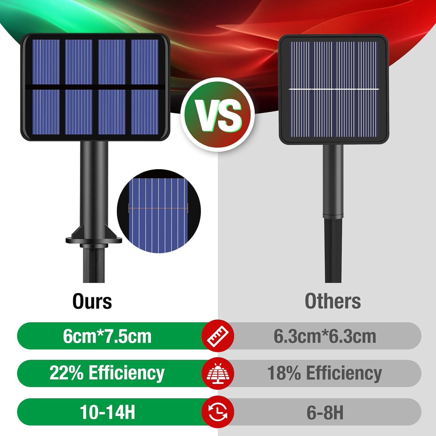 - Waterproof Design for All Weather: Light string and solar panel are IP65 waterproof to withstand any weather, either rain, sun, or snow. Safe for outdoor use, Don't worry about short circuits or bad weather damage (can't soak in water). Emit a red green light after rain, romantic and beautify the yard