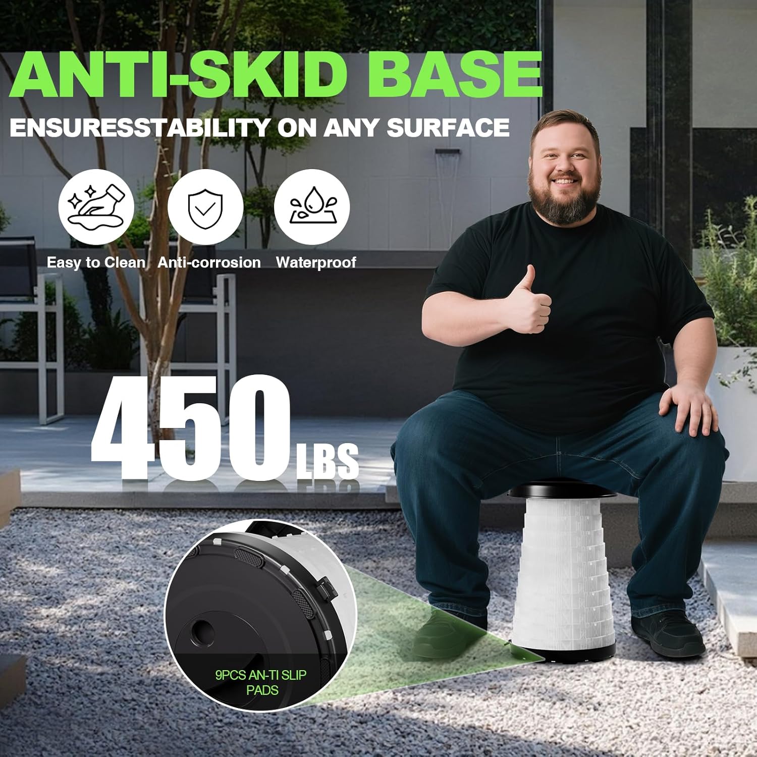 - 【Unmatched Stability & Heavy-Duty Support】 Equipped with 9 premium anti-slip rubber pads, it grips securely on grass, sand, or uneven terrain. Tested to hold up to 450lbs (200kg), it’s the sturdiest stool for big & tall users, plus-size individuals, and rugged outdoor use.