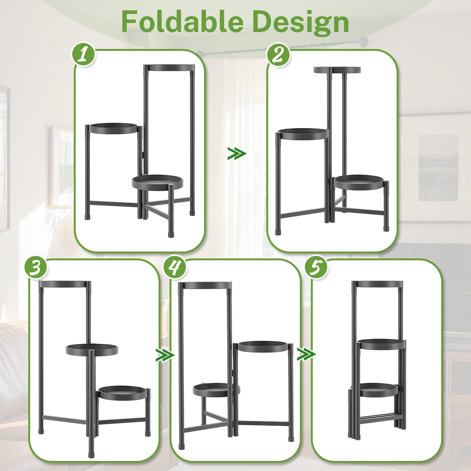 - Easy 5-Minute Assembly: No tools, no screws, no stress—just follow the clear manual to set up your plant stand indoor in minutes. The quick and simple process saves effort, letting you enjoy a sturdy and orderly display right away