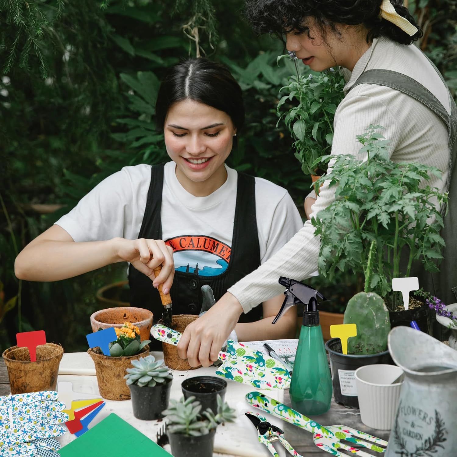 - 【10 PCS Gardening Tool Set】The garden tool set includes big trowel,Garden fork, pruner, kneeling pad, sprayer,20pcs plant labels,mom garden apron ,repotting mats,a pair of gloves and a floral garden tote bag, which meets almost all the tool needs for dai ly gardening maintenance, working in your exclusive garden at any time.