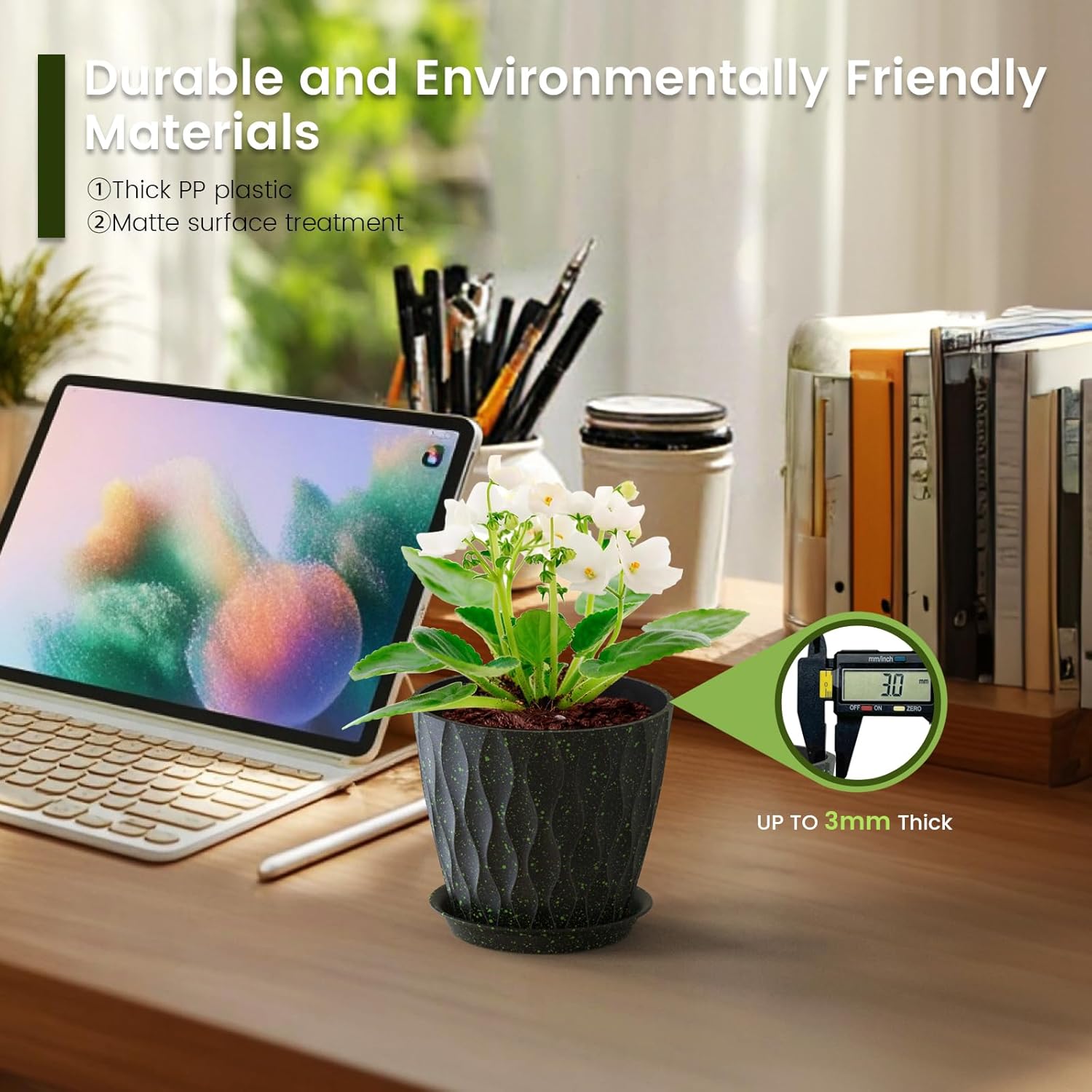- 【Versatile for Indoor & Outdoor Use】These plastic pots for plants are perfect for enhancing windowsills, desktops, kitchens, bookshelves, gardens, and offices. Compatible with most plant stands and hanging systems, plant pots indoor offer endless possibilities for vertical gardening in any space
