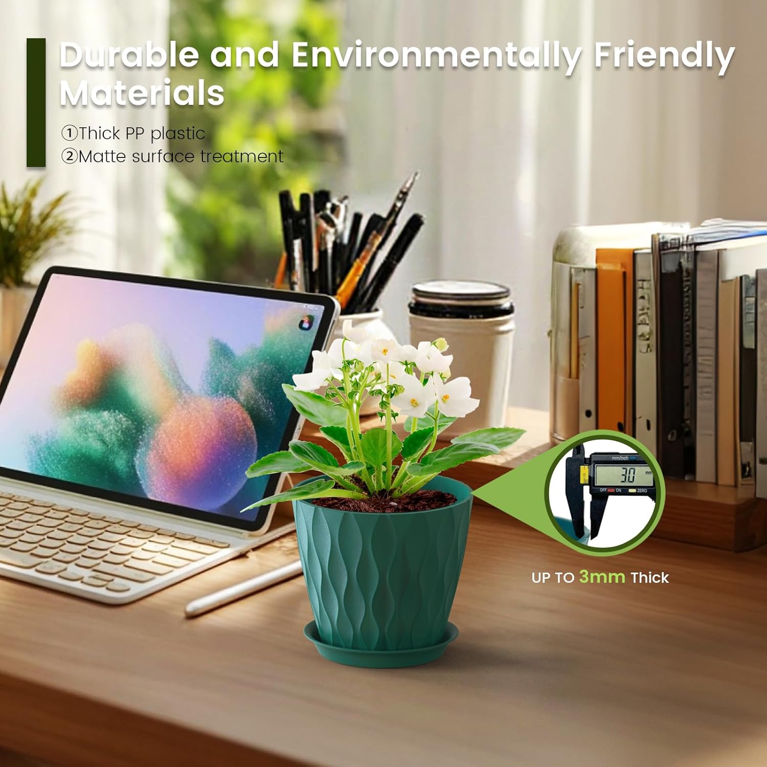 - 【Versatile for Indoor & Outdoor Use】These plastic pots for plants are perfect for enhancing windowsills, desktops, kitchens, bookshelves, gardens, and offices. Compatible with most plant stands and hanging systems, plant pots indoor offer endless possibilities for vertical gardening in any space