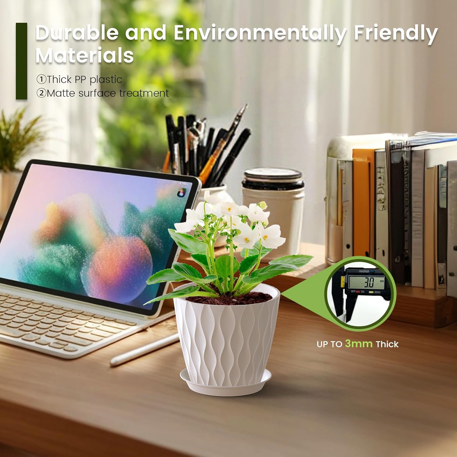- 【Lightweight and Durable】Crafted from thickened plastic, our indoor plant pots are lightweight yet extremely durable. Weatherproof and UV-resistant, even if used frequently, it will not easily break or fade, ensuring lasting beauty and functionality.