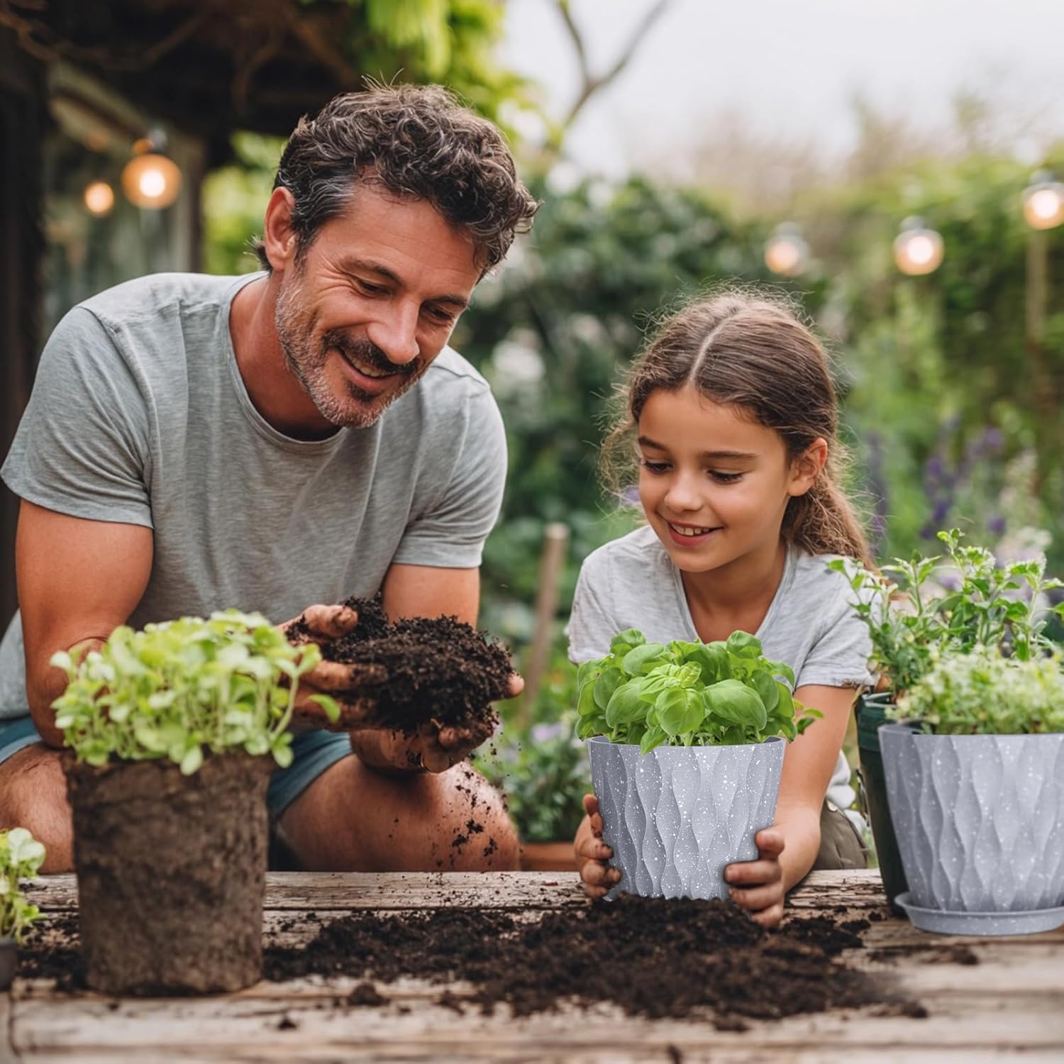 - 【Perfect Size for Versatile Planting】These 7 inch flower pots bulk are ideally sized for small to medium houseplants, including: Pothos, Snake Plant, Aloe Vera, ZZ Plant; African Violet, Miniature Roses; Mint, Basil; Succulents & Cacti. The decorative plant pots make a fantastic gift for friends and family who love growing plants
