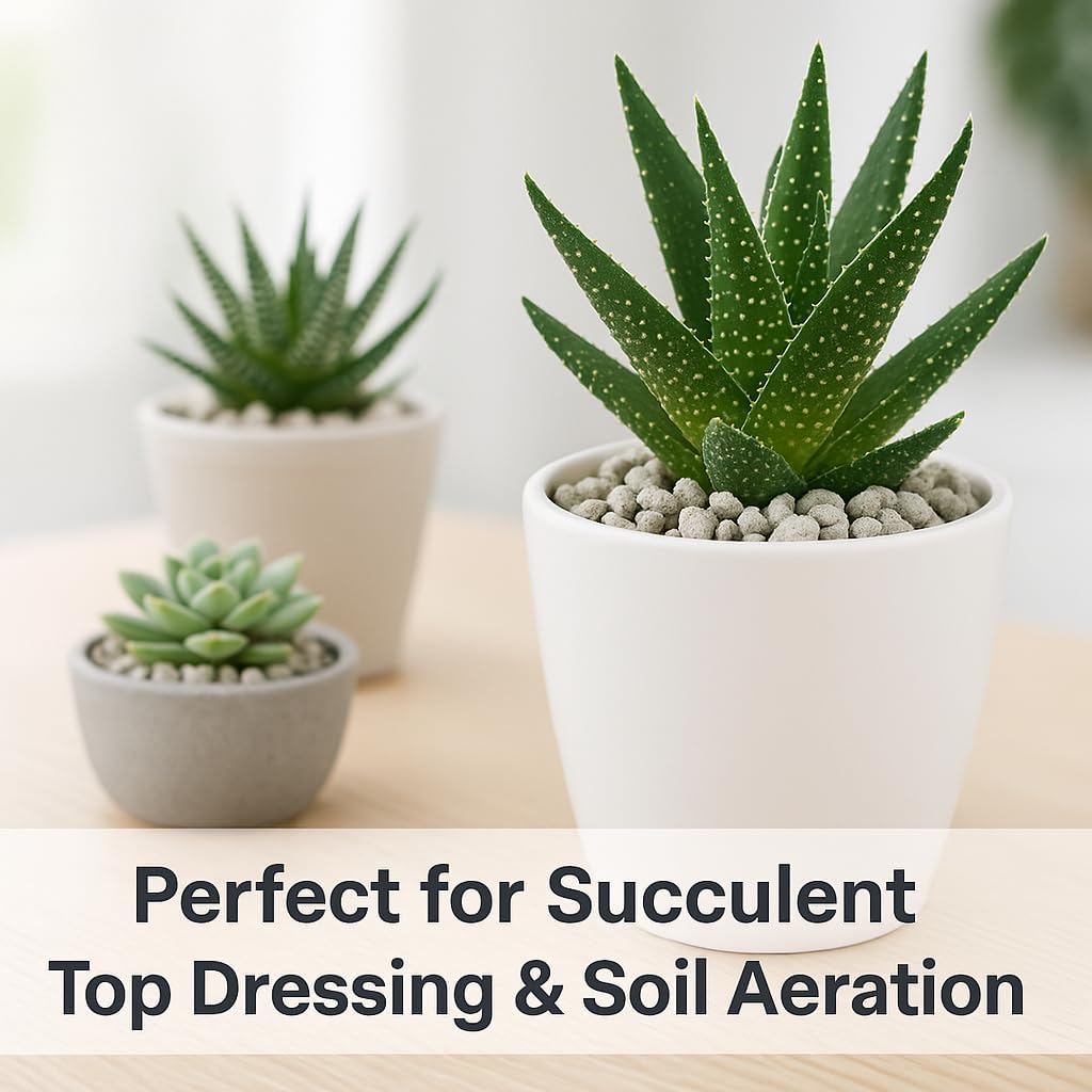 - π Easy-to-Use & Economical β Effortlessly mixes into any potting soil or garden bed. Optimized size (3/8β1/4 inch) is versatile and aesthetically pleasing, suitable as a succulent top dressing, drainage rocks for potted plants, and bonsai rocks.