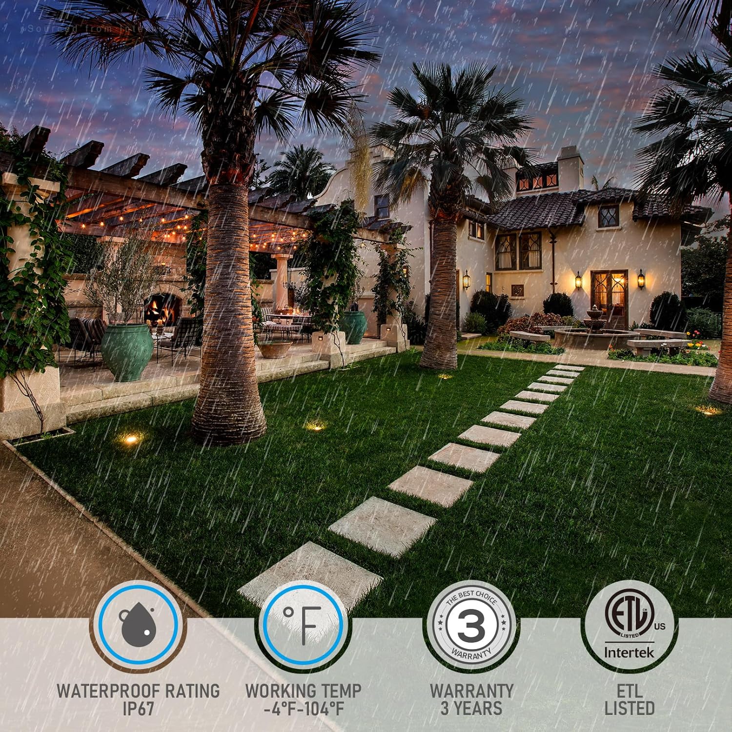 - Safe for Outdoor Use: Die-casted aluminum housing makes this led in-ground light has perfect corrosion resistance and heat dissipation. IP67 waterproof and -4β-104β working temperaturemakes it can work under harsh weather