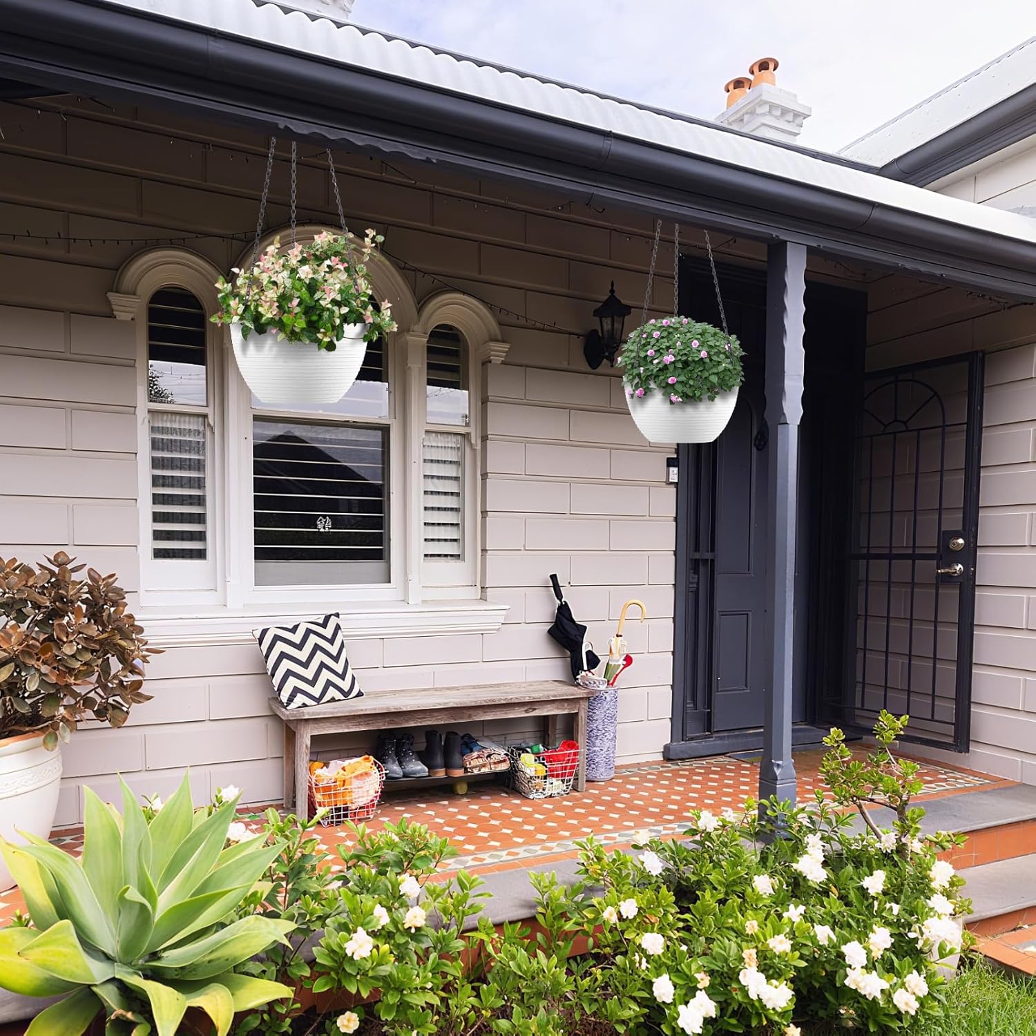 Hanging Planters for Indoor Outdoor Plants, Set of 2 Self Watering Hanging Pots with Drainage Hole & Plug and 20" Chain & Hooks