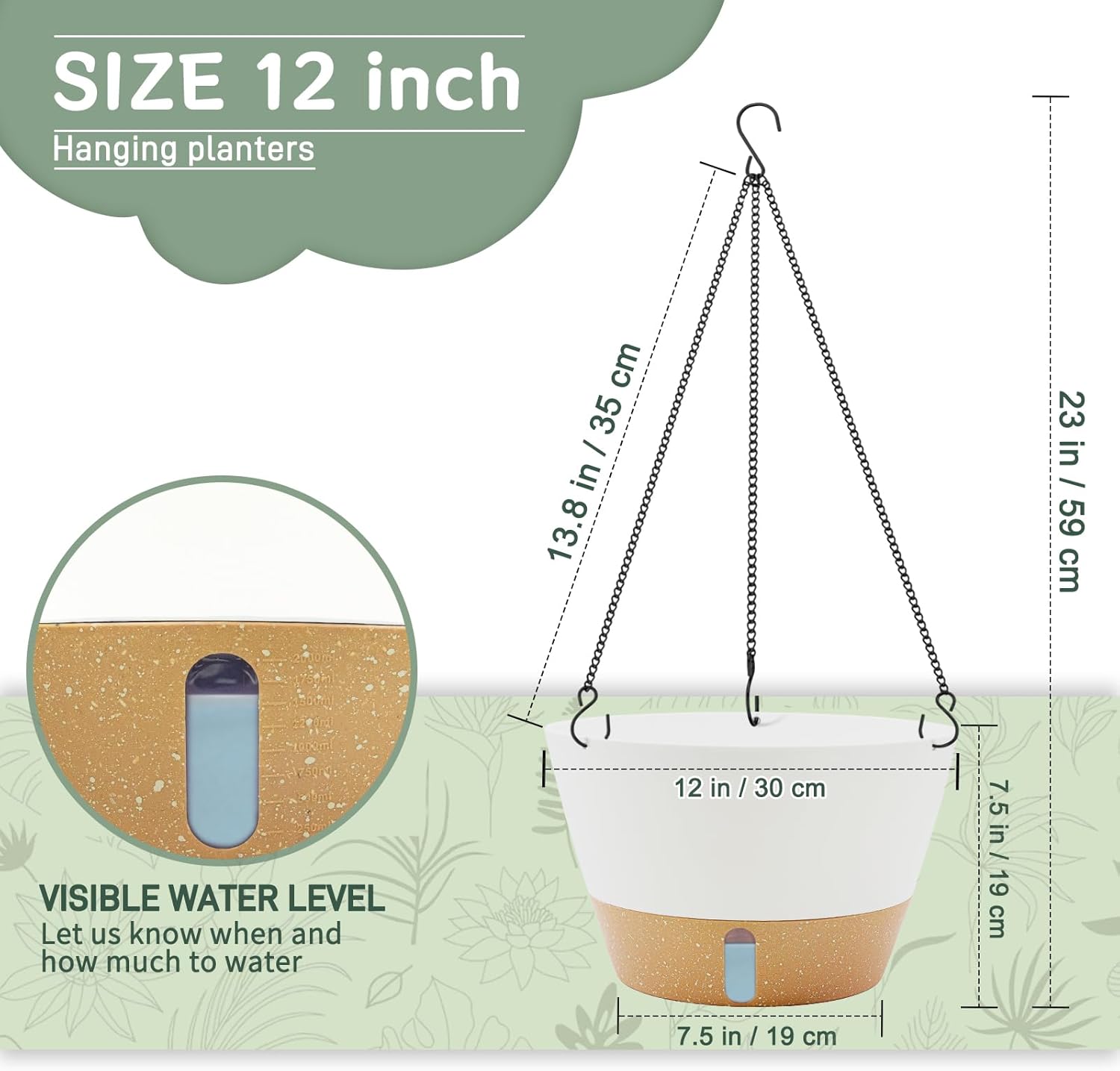 ZMTECH 12 Inch Hanging Planters for Outdoor, 2 Pack Self Watering Pots for Indoor Plants, Large Hanging Baskets for Plants Outdoor with Visual Reservoir and Drainage Hole(White)