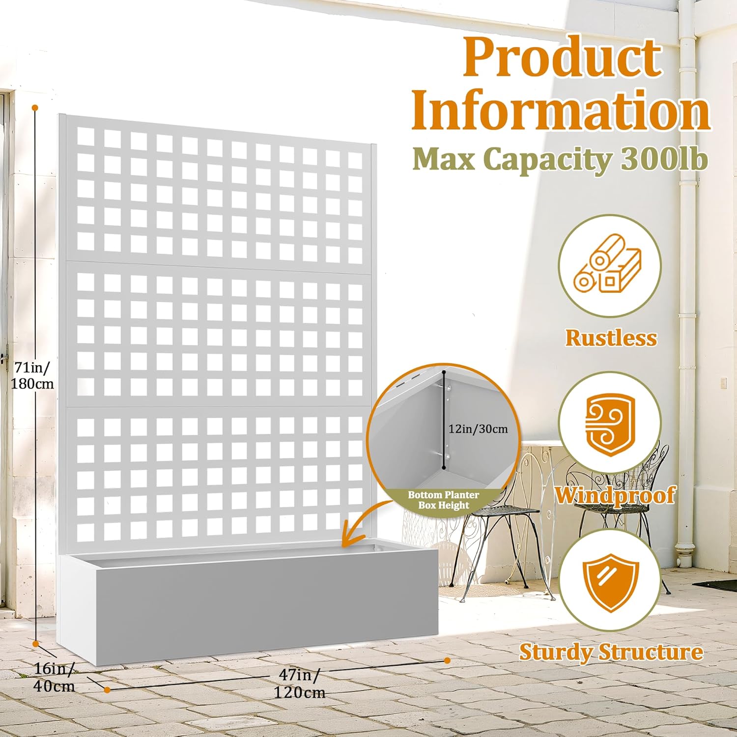 Metal Planter Box with Trellis, Heavy-Duty Raised Garden Bed for Climbing Plants, Drainage Hole, Outdoor Planter Box with Privacy Screen,47''L×16''W×71''H
