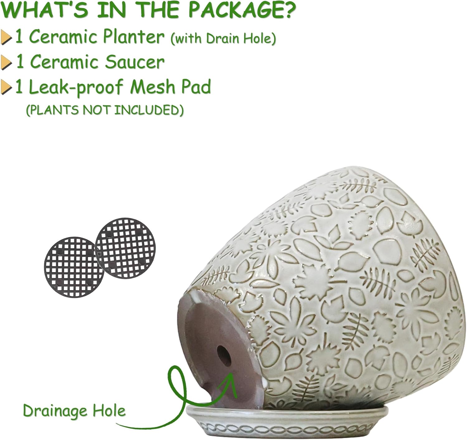 - Thoughtful Gift for Plant Enthusiasts:The Ceramic Plant pots with Drainage Hole and Saucer for plants indoor Designed with charming leaf , flower, and plant motifs, these planters make excellent gifts for plant lovers. Suitable for occasions such as birthdays, anniversaries, housewarmings, Thanksgiving, Christmas, and more.