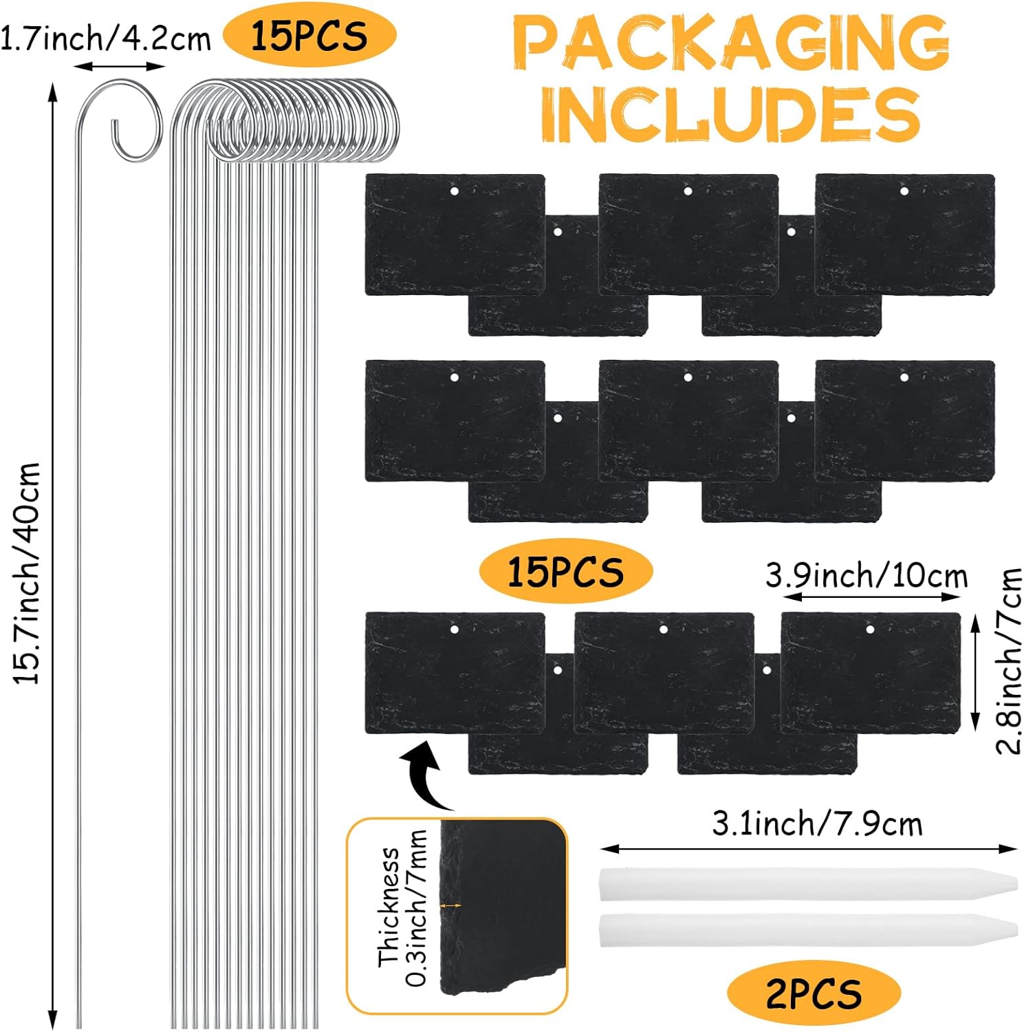 - Value Pack: The package includes a set of 15 slate plant labels, each measuring 3.9x2.8inch/10x7cm, with stainless steel metal rods approximately 15.7inch/40cm long