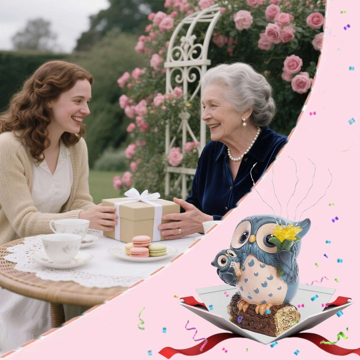 - Funny Owl Garden Statues: Charming owl decor shows a mother owl holding her baby while standing on a tree branch, gently shining a lantern toward the sky as they gaze at the stars. This heartwarming scene is full of childlike wonder. Perfect garden decorations for patios, porches, yards, balconies, fences, or walkways. A magical touch to your outdoor garden decor.