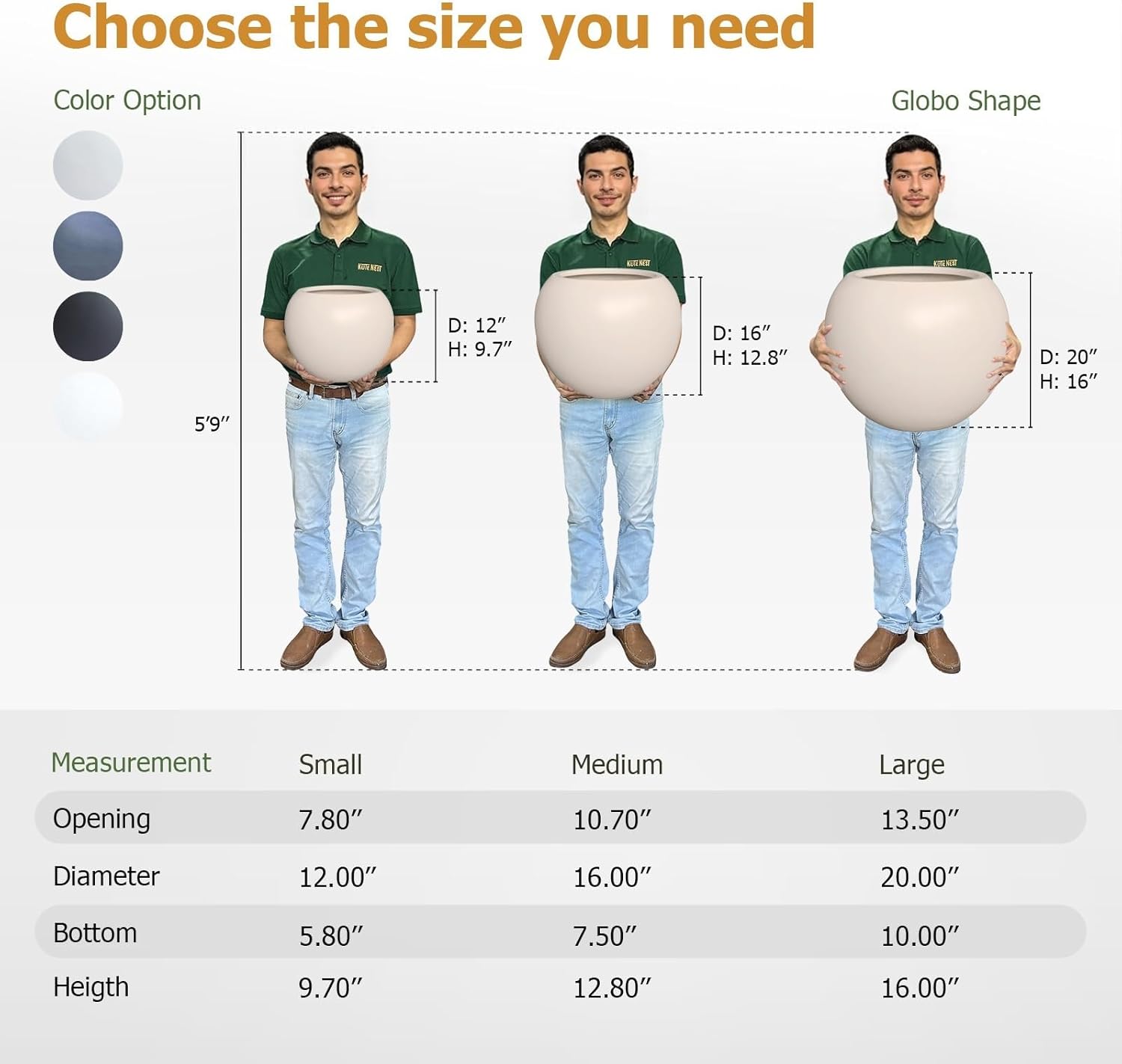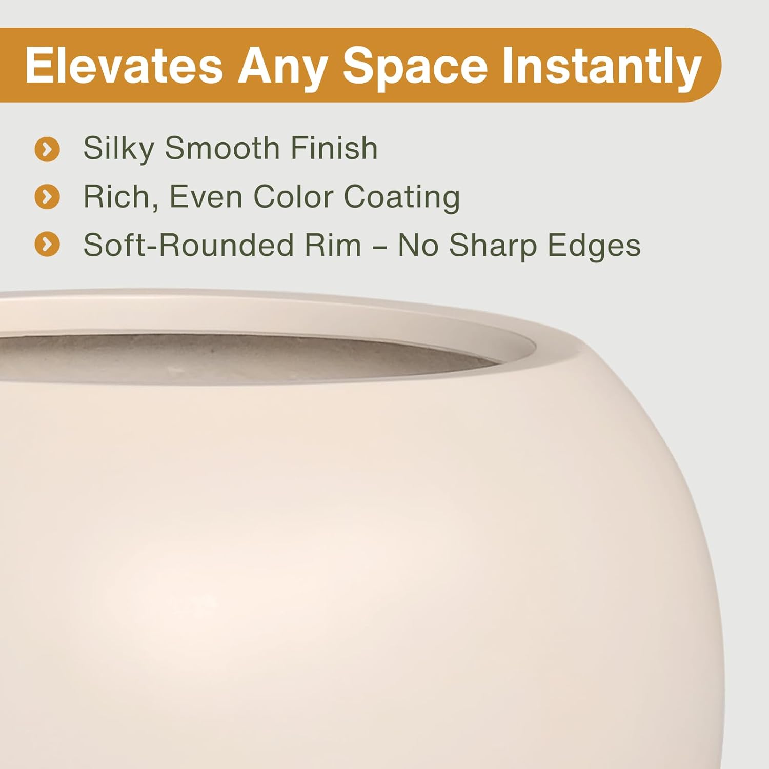 12.8" H x 16" D Globo Fiberstone Round Planter with Drainage Hole, Weather Resistant, Smooth Finish, Planters for Indoor Plants & Outdoor, 2 Extra Coco Mats (Kilim Beige, 10.7" Pot Opening)