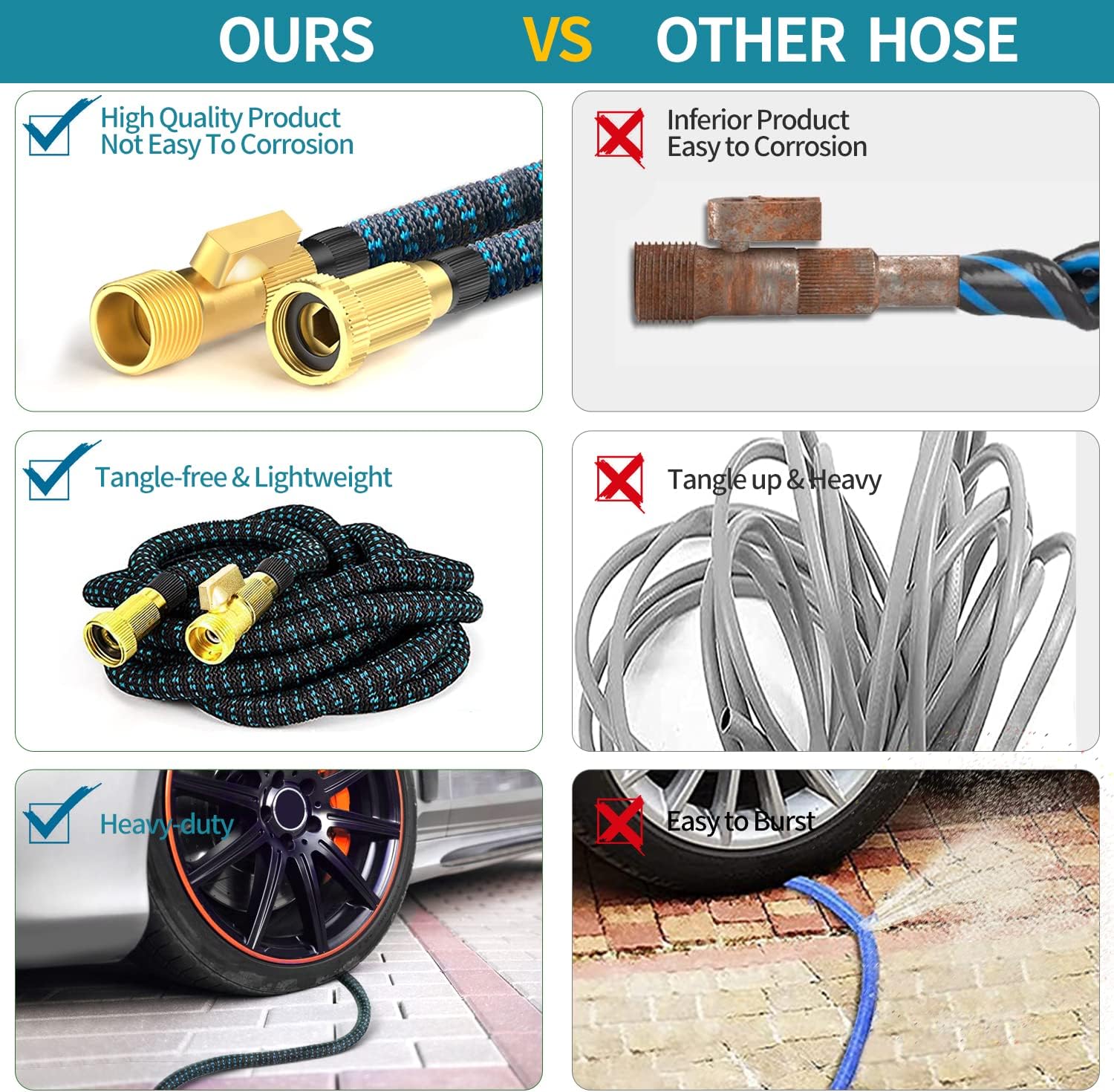 - No kinking, no leaks, lightweight and convenient: Due to its special material and structural design, the garden hose will not kink, twist, leak, burst, or tangle during use, ensuring stability and safety. The lightweight design makes it easy to move and store. The included storage bag makes it convenient to store and carry