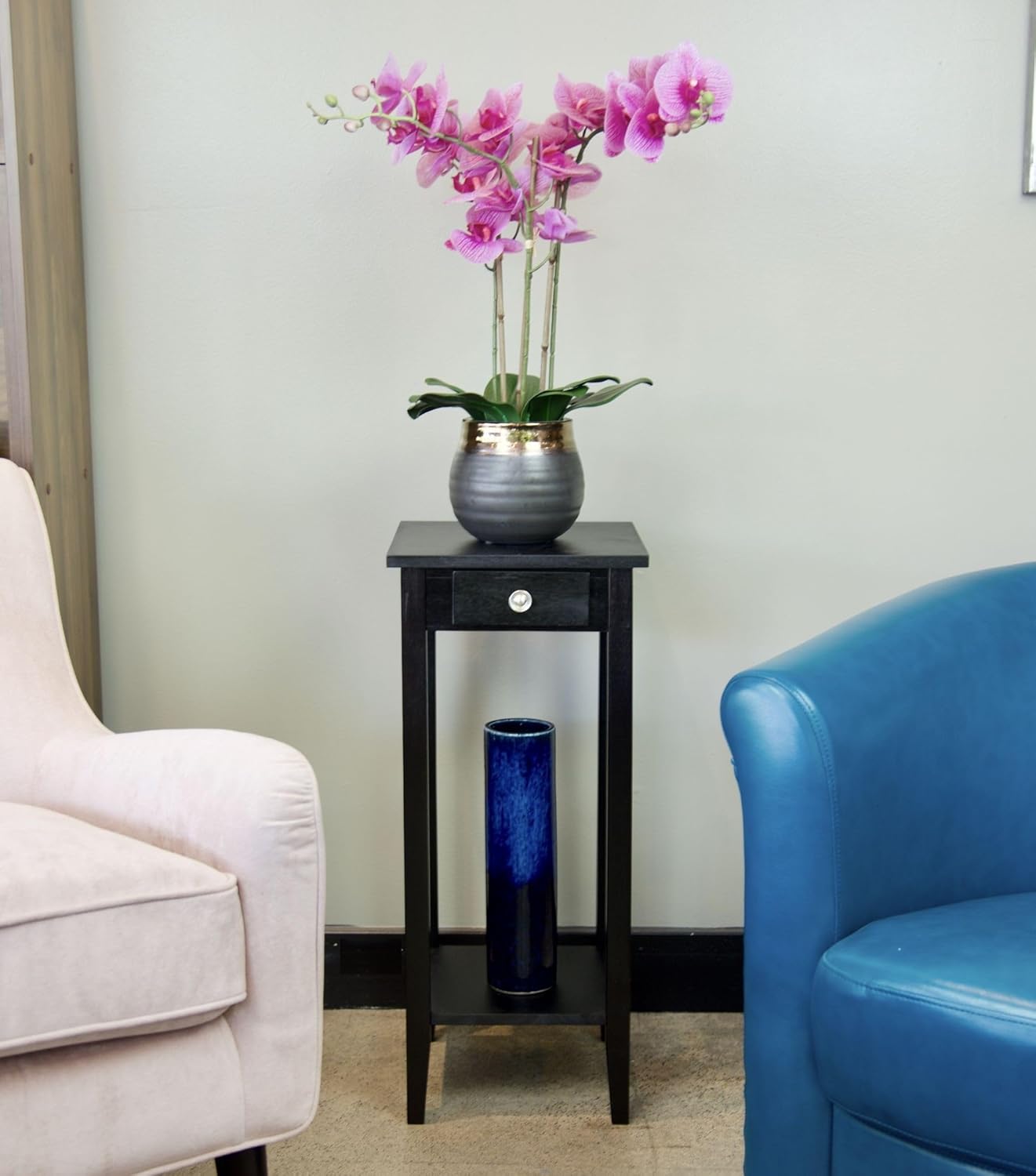 2-Tier Solid Acacia Plant Stand w/Drawer