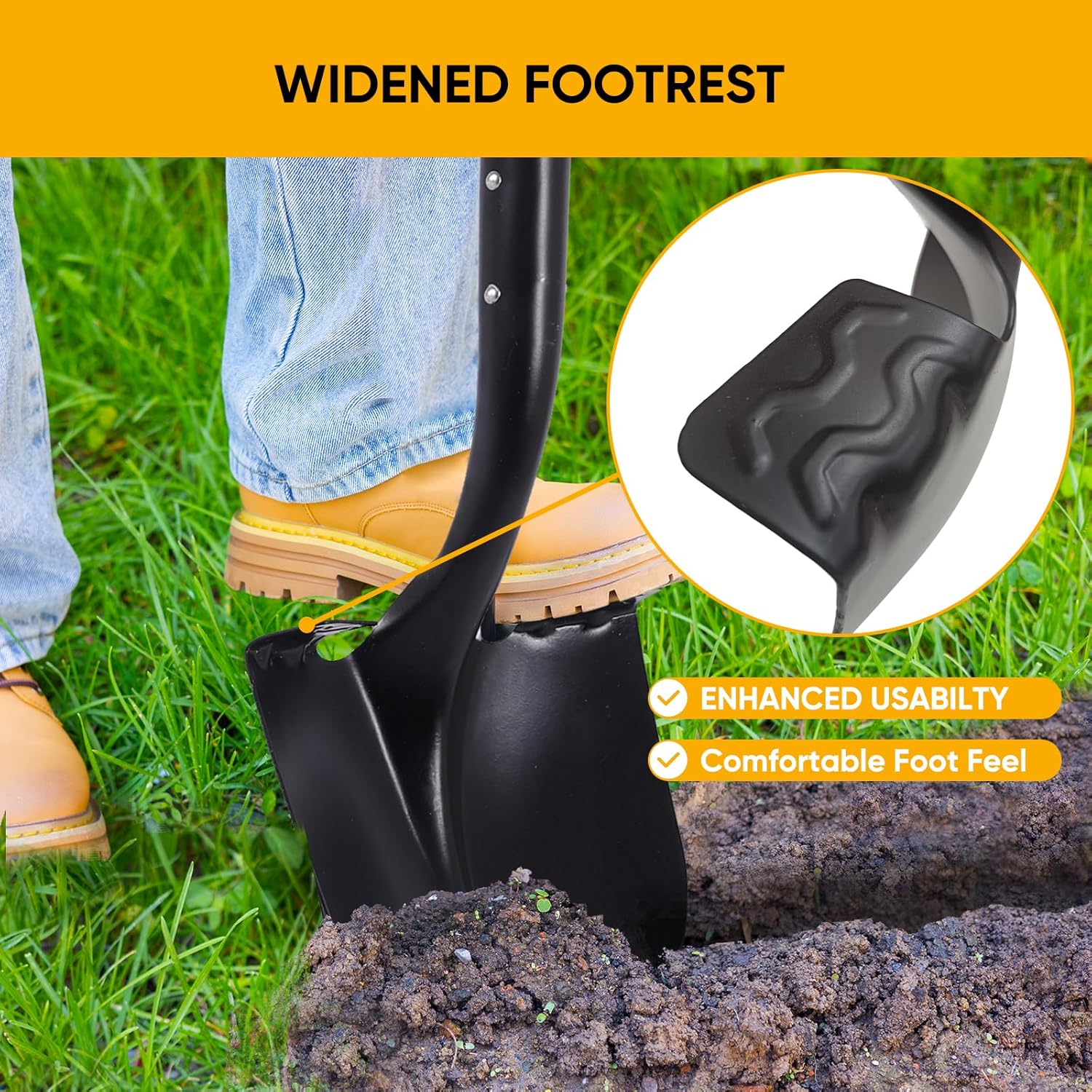 - RELIABLE HEAD: Robust steel spade head with pointed tip effectively penetrates soil and breaks through tough ground