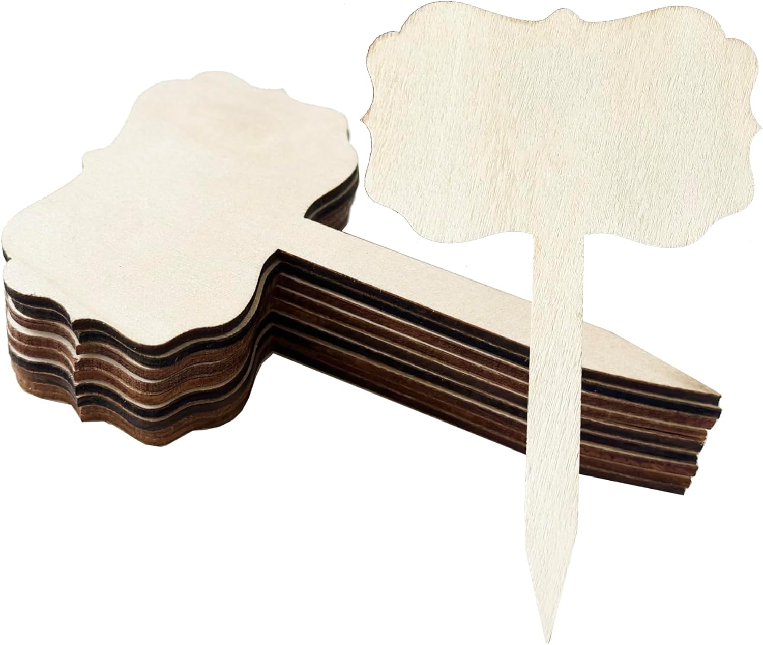 100 Pcs Wood Plant Labels, Natural Wooden Plant Marker Garden Sign Tags, T-Type Garden Markers for Succulents, Herbs, Seedlings, Potted, Flowers, Vegetables (Polygon)
