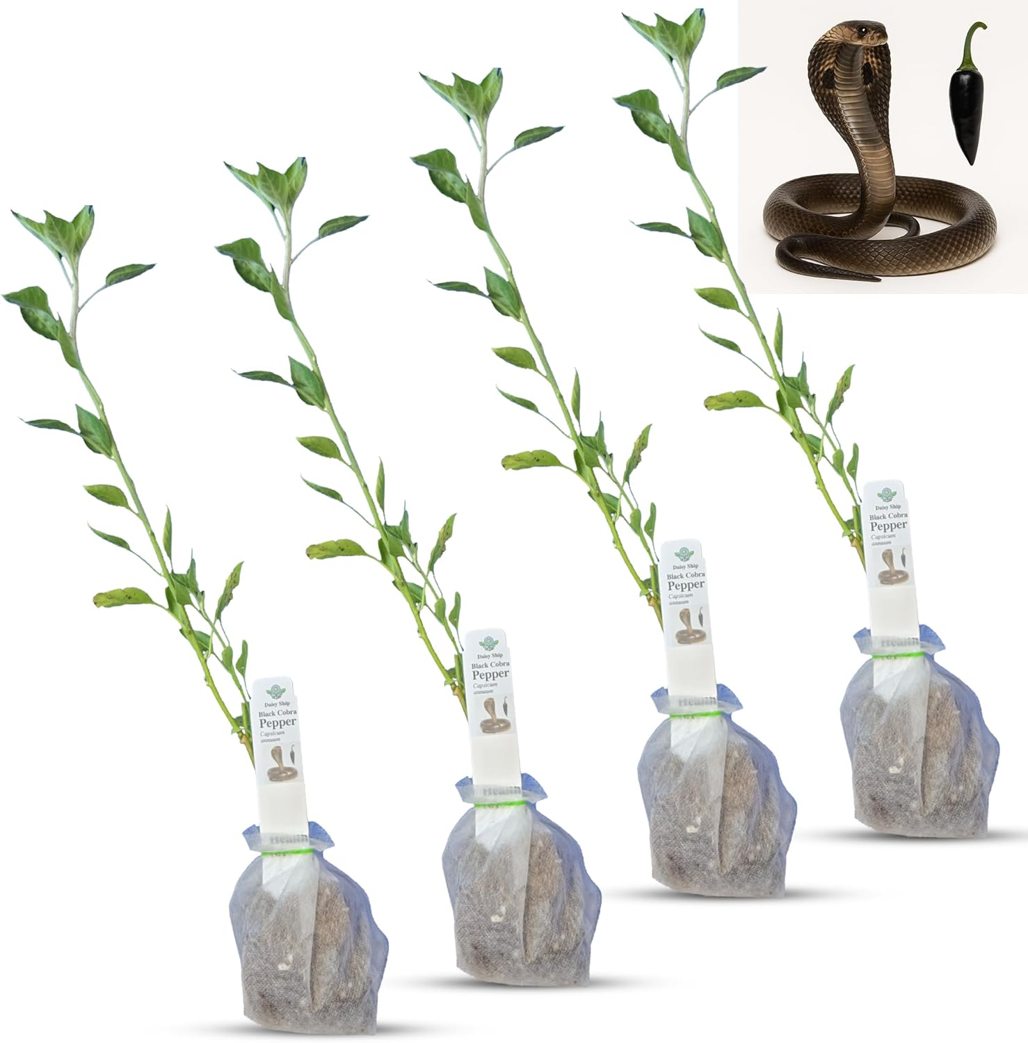 Premium Black Cobra Pepper (Capsicum Annuum) - Rare & Exotic Hot Chili Pepper, Perfect for Home Gardening and Gourmet Cooking (4 bkcbr pep Bags)