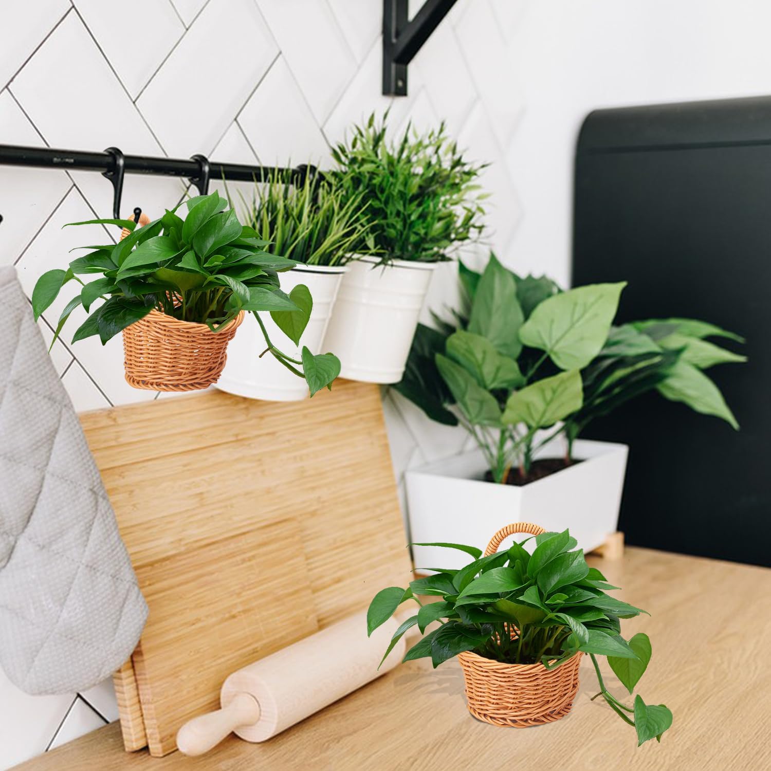 - 【Durable Construction: 】Made from high-quality plastic, these Plastic Woven Wall Hanging Basket mimic the look of wicker but offer superior durability and resistance to moisture and deformation.