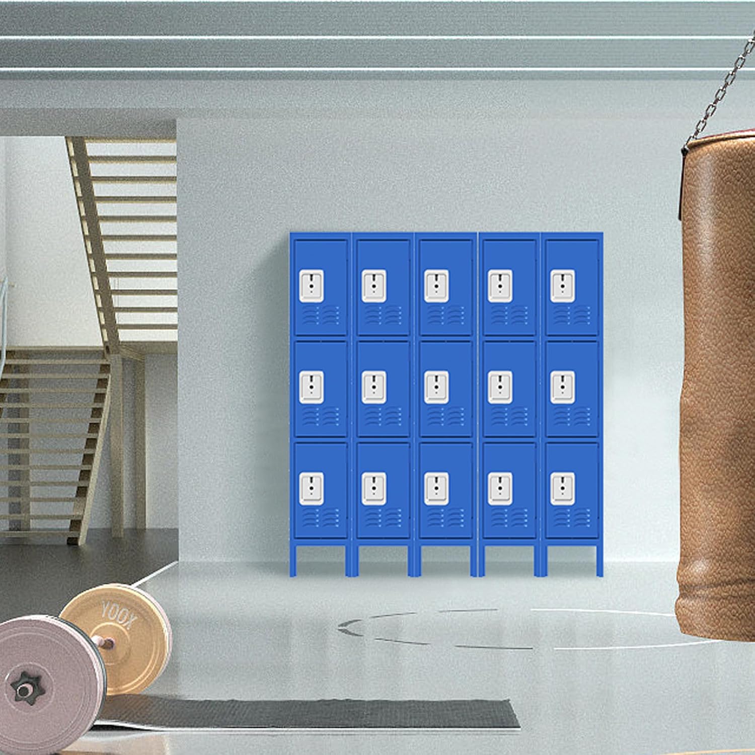 - ăLARGE CAPACITYăThe steel lockers for employees measures 12.01"D x 12.01"W x 66"H and features 3-door 9-compartment classified storage, allowing you to organize your belongings simply and easily.Make sure you have enough space to store your tools, clothes, shoes, sports equipment, bags, brooms,etc. Ideal as ideal employee lockers, gym lockers, office lockers, school lockers, home lockers, garage lockers.
