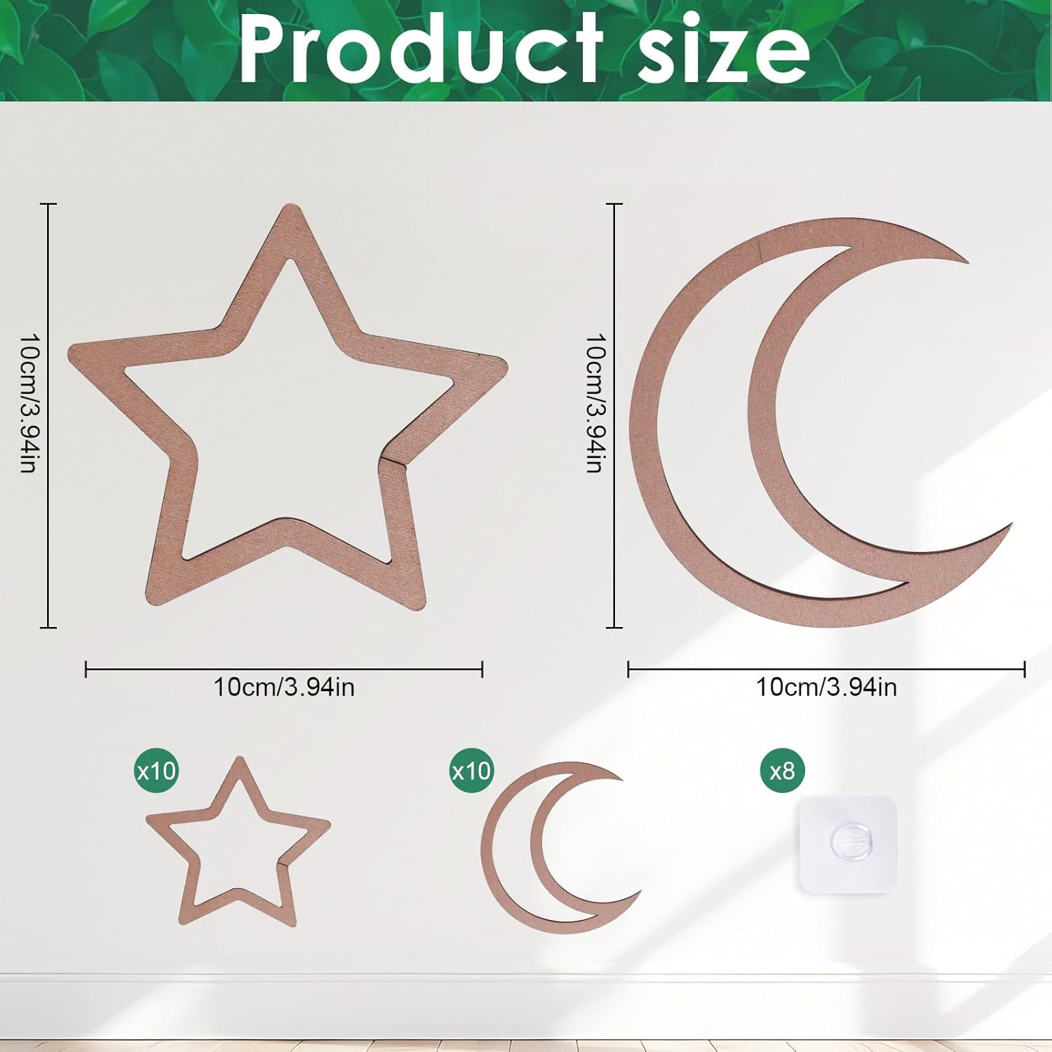 - Package Include: 10pcs star climber,10pcs moon climber, 8pcs self-adhesive hooks.