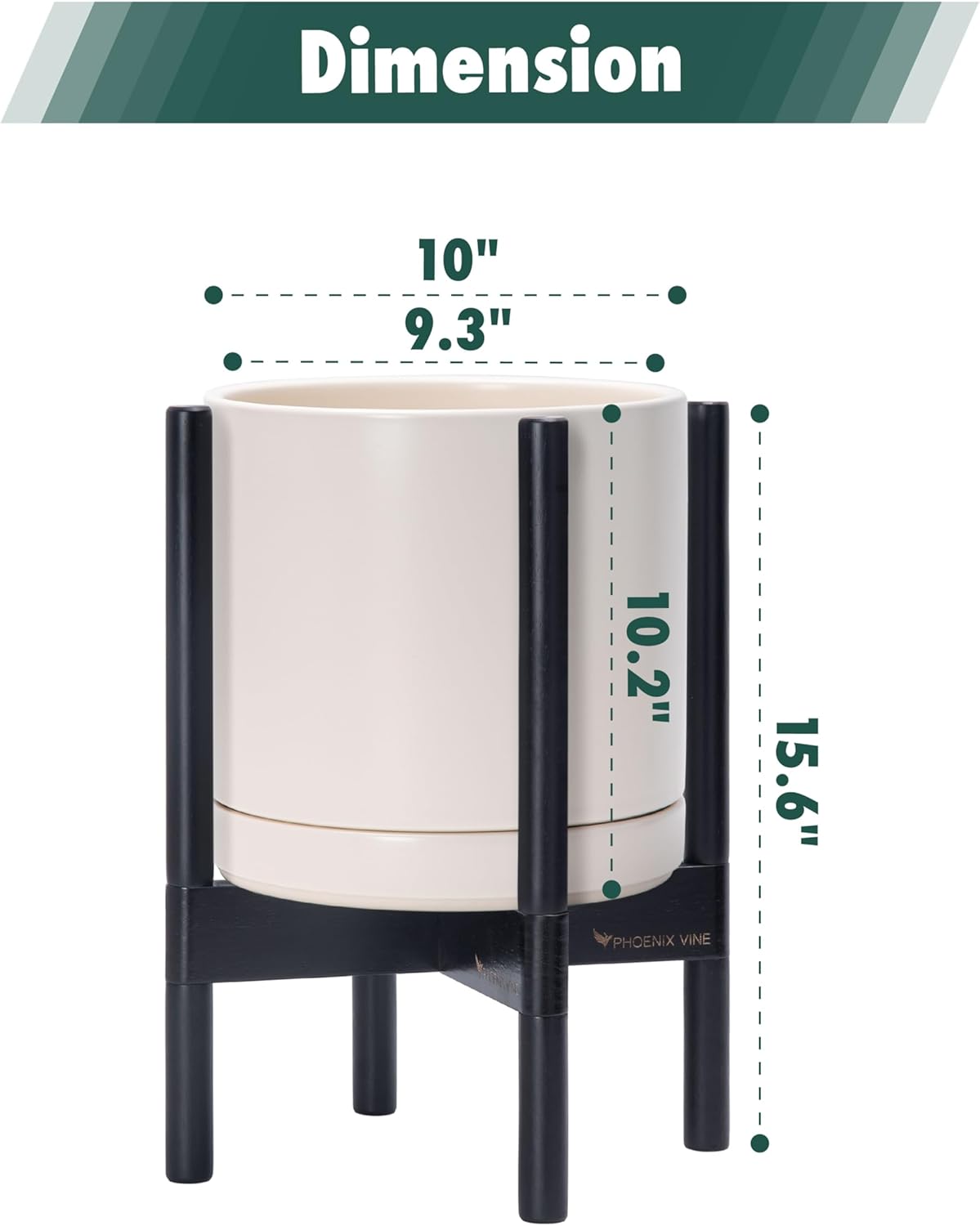 - 10 Inch Pot with Stand Set: Planter size: 10"Diameter x 10.2"H; pot with stand total height: 16.5 inch.