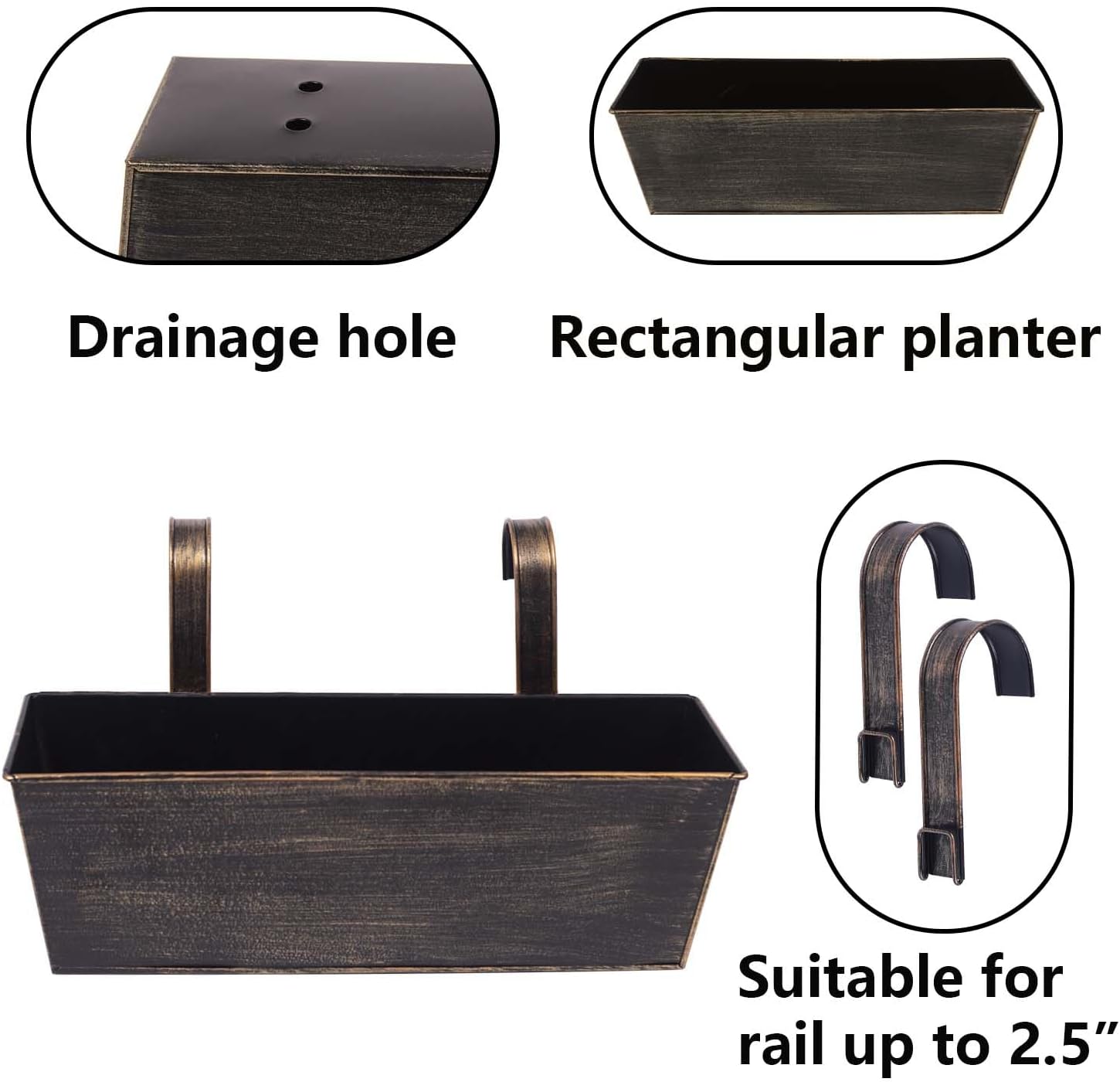 - Tool-Free Adjustable Installation:Our balcony planters railing hanging come with detachable hooks that fit railings less than 2.5 inches wide and can be installed effortlessly, making them the ideal window box brackets or over the fence planters