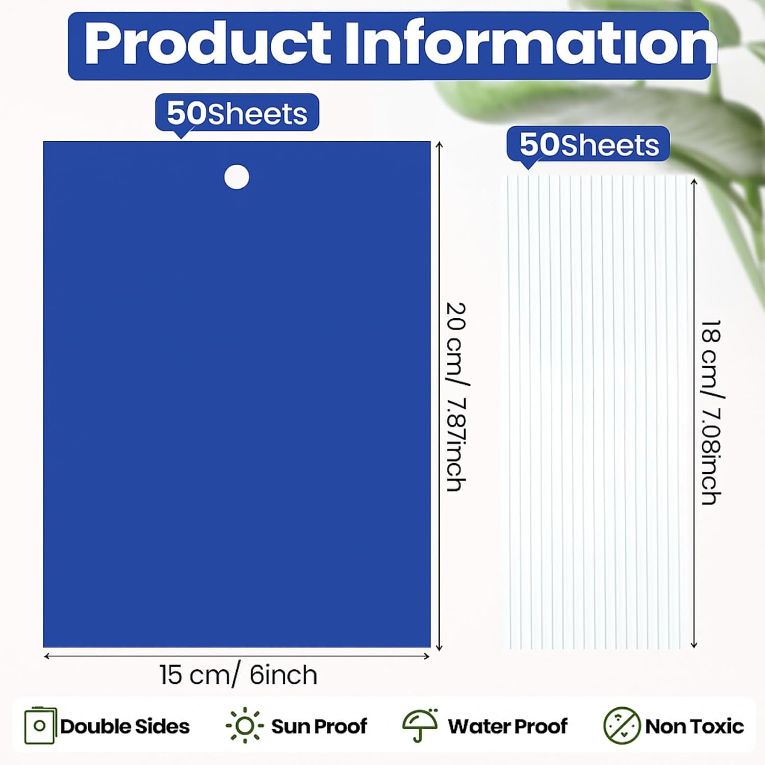 Qualirey 50 Pcs 6 x 8 Inch Sticky Traps for Plant Double Sided Sticky Trap for Gnats with Twist Ties Fly Traps for Fruit Insect Fungus Bugs Indoor Outdoor (Blue)