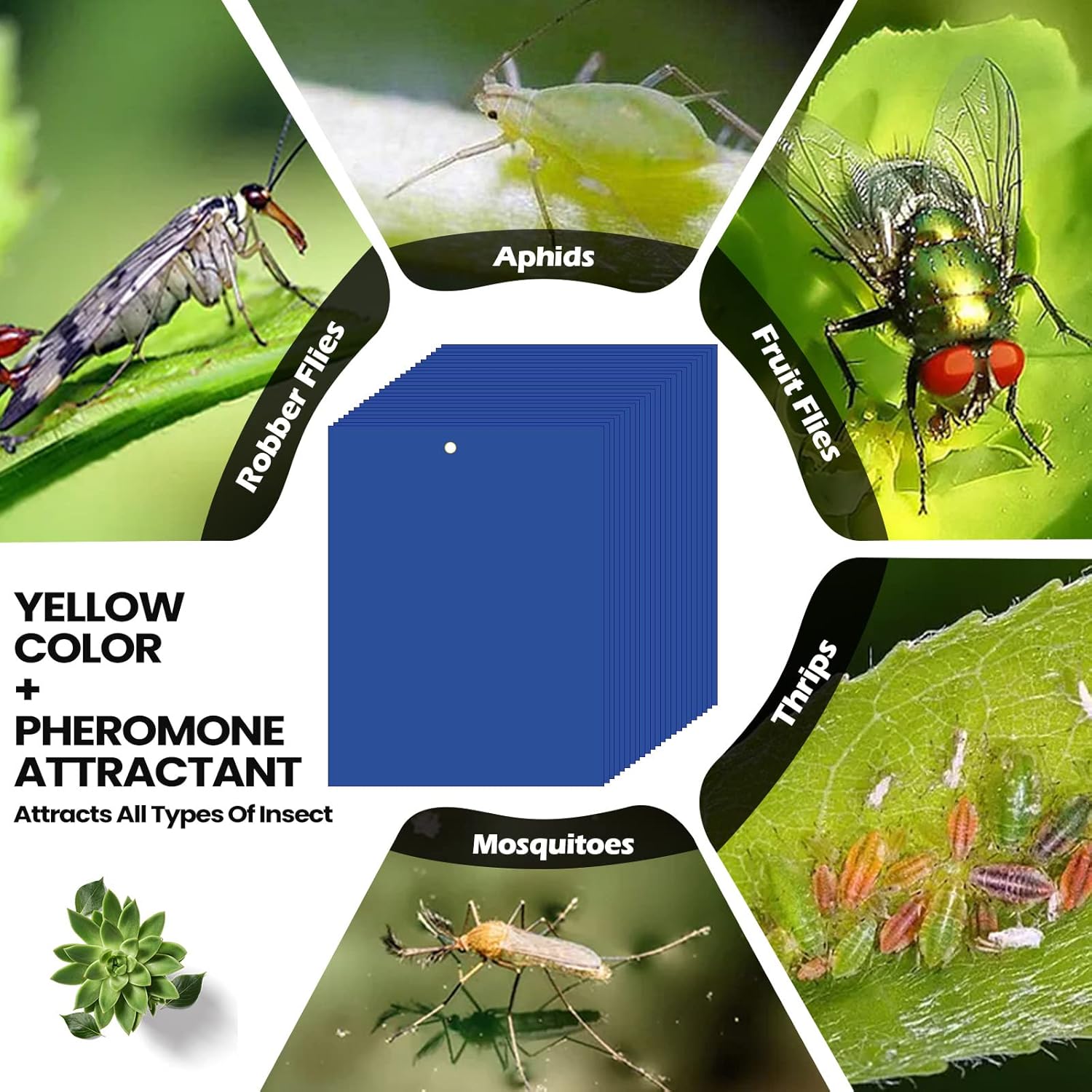 - Double Sided Stickiness: our yellow sticky traps are designed to be double sided, widely catch the most pests, includes white flies, leaf miners, fungus gnats, shore flies, midges, mosquitoes, and other flying insects, you can place them in the garden, lawn, yard, next to the trash can and so on
