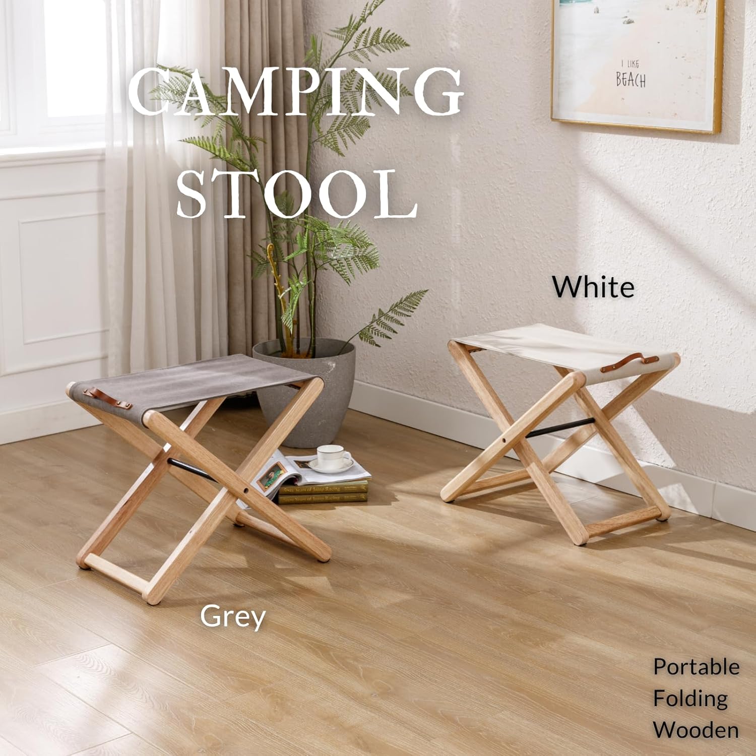 Folding Camping Stools Set of 2, Canvas Folding Stool with Wood Legs Portable Camp Stool Chairs for Outdoor Fishing Picnic Travel BBQ, Beige