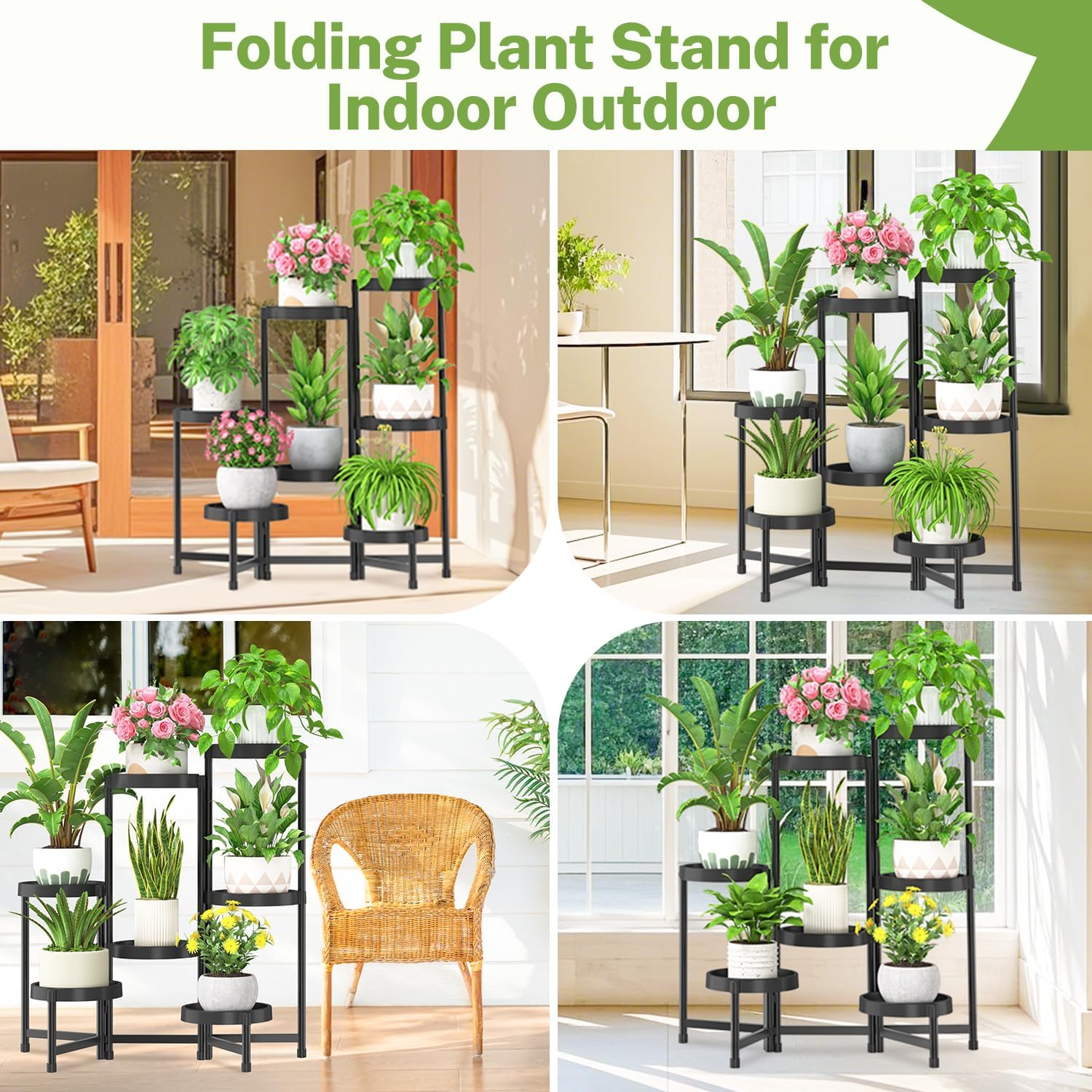 - Space Saving Foldable and Adjustable Design: You can effortlessly adjust the display angle of the plant stand outdoor by rotating outermost pipes, ensuring your plants are attractively presented. When not in use, it can be fully folded for easy storage