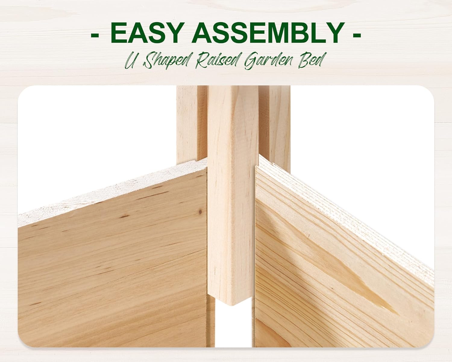 AMERLIFE U-Shaped Raised Garden Bed, 7.5Wx9Dx1.6H Outdoor Wooden Raised Garden Bed Planter with 19.6" Depth Planter Box